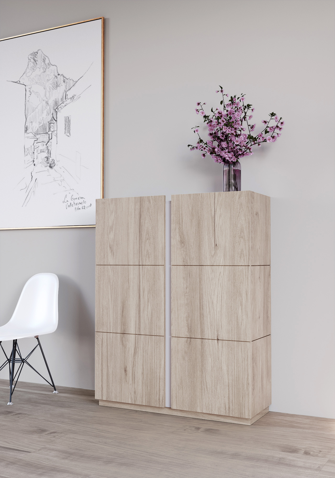 Meuble à chaussures, modèle HESSA, avec deux portes, Herdasa. Chêne Clair-Blanc