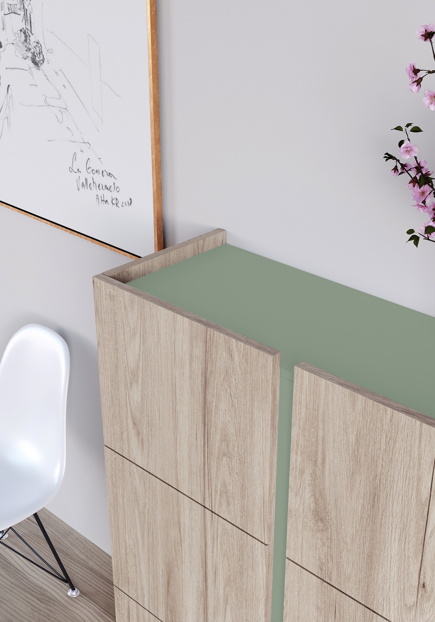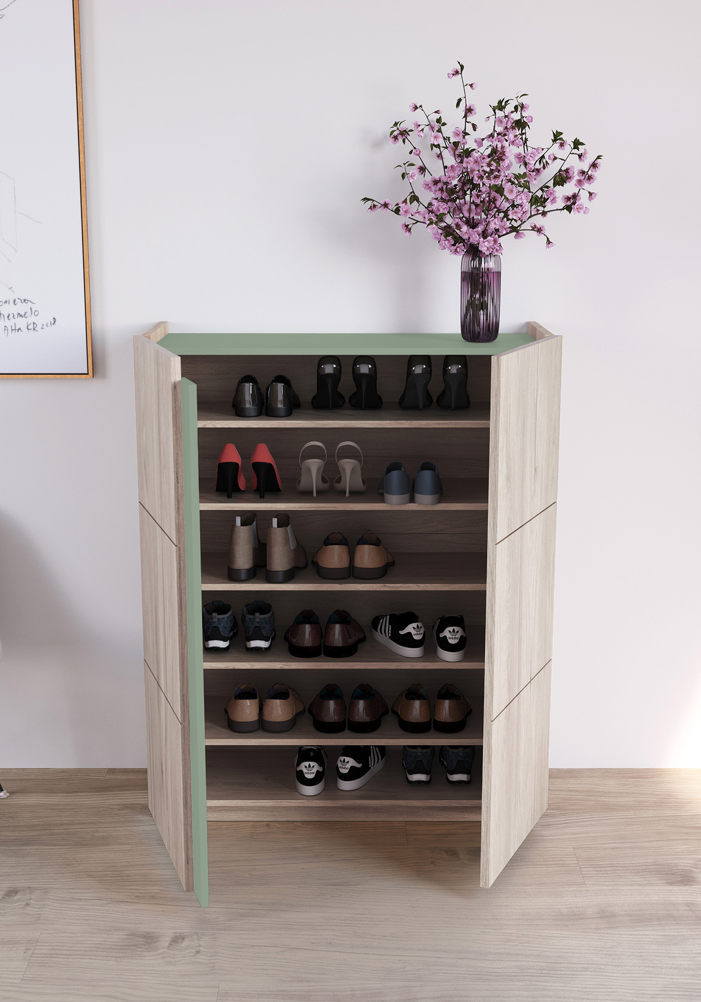 Meuble à chaussures, modèle HESSA, avec deux portes, Herdasa. Chêne Clair-Vert