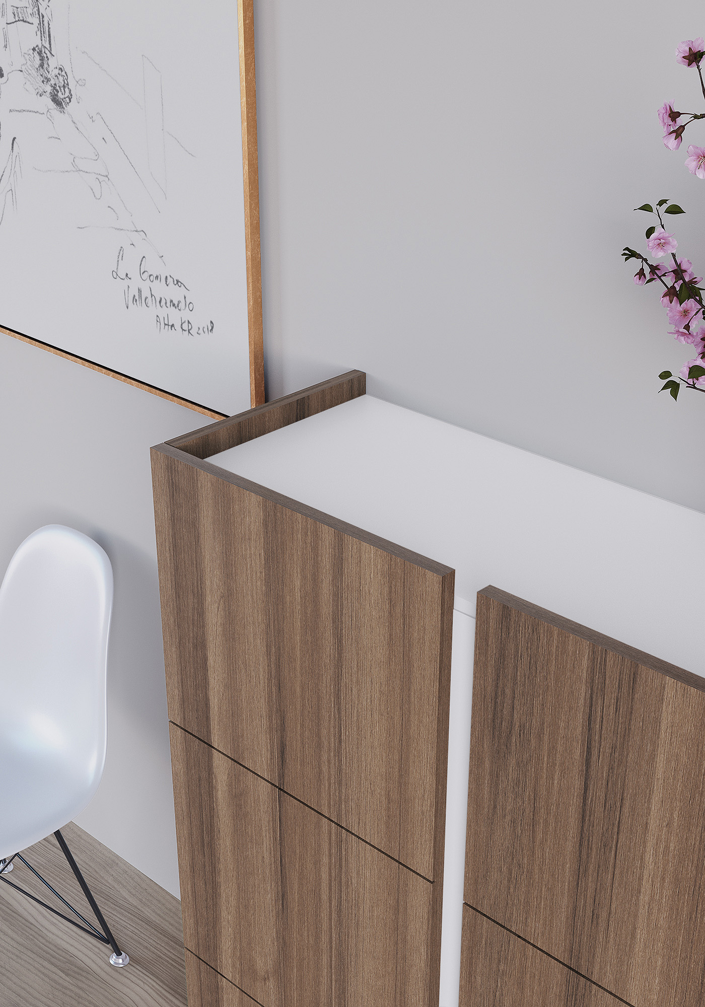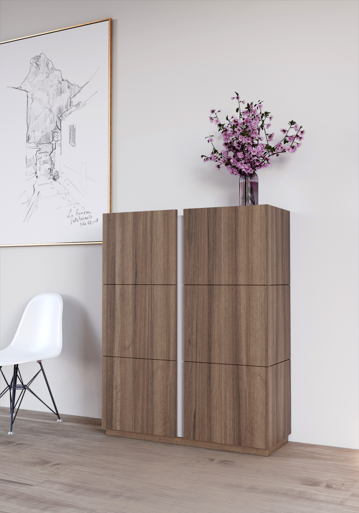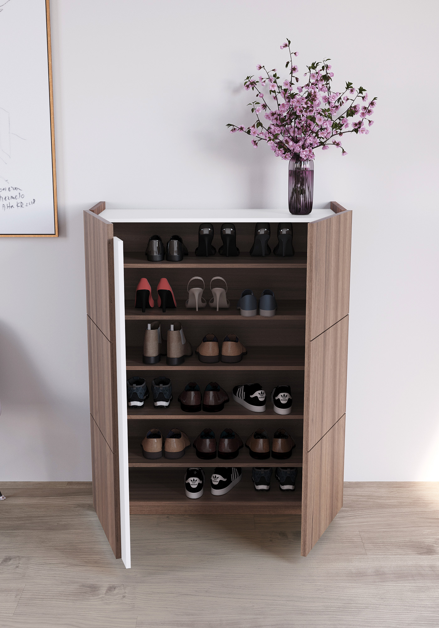 Meuble à chaussures, modèle HESSA, avec deux portes, Herdasa. Noyer-Blanc