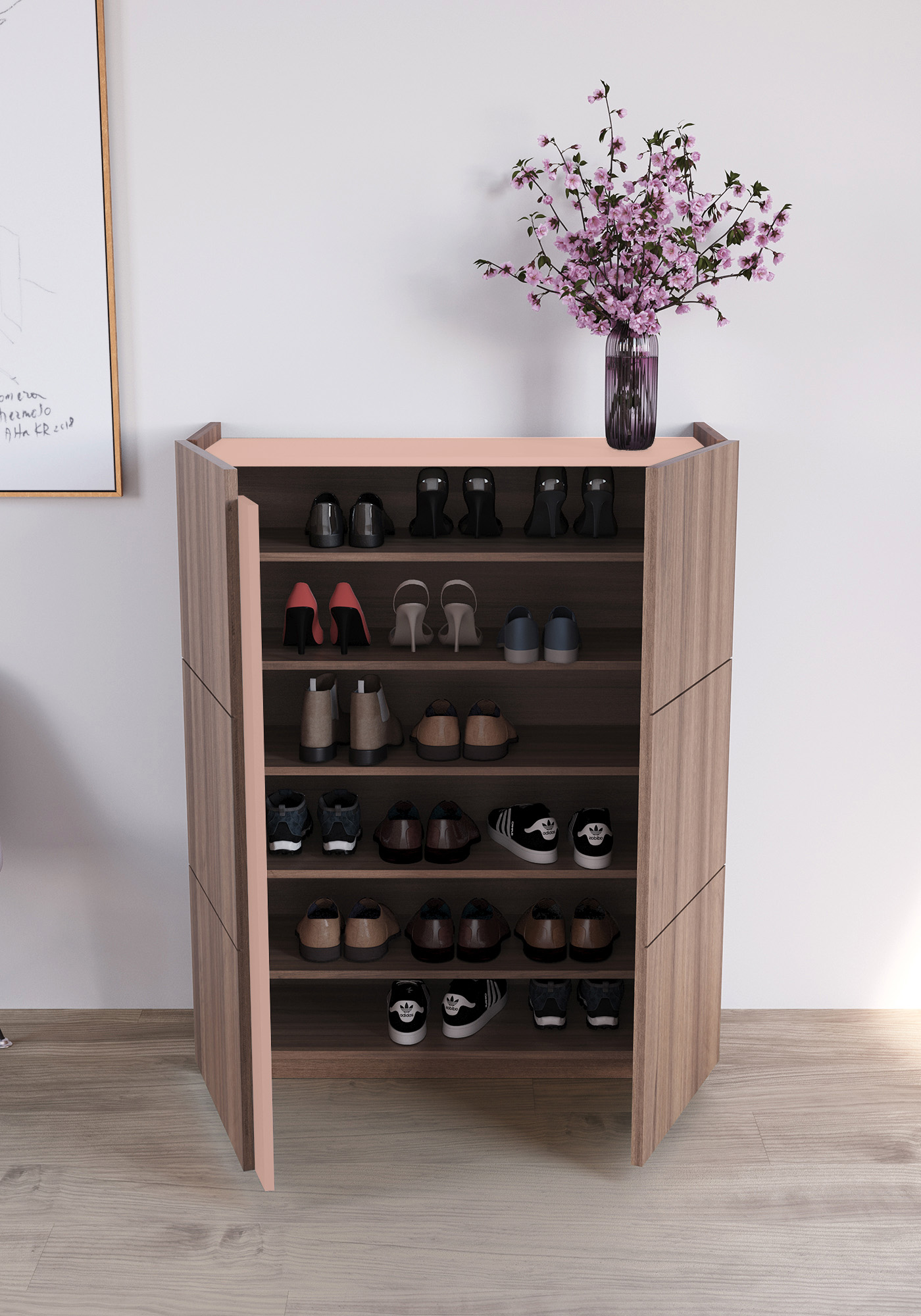 Meuble à chaussures, modèle HESSA, avec deux portes, Herdasa. Noyer-Rose