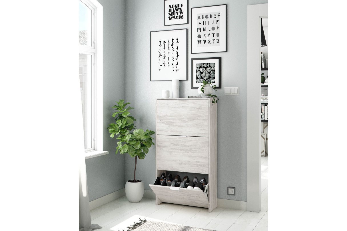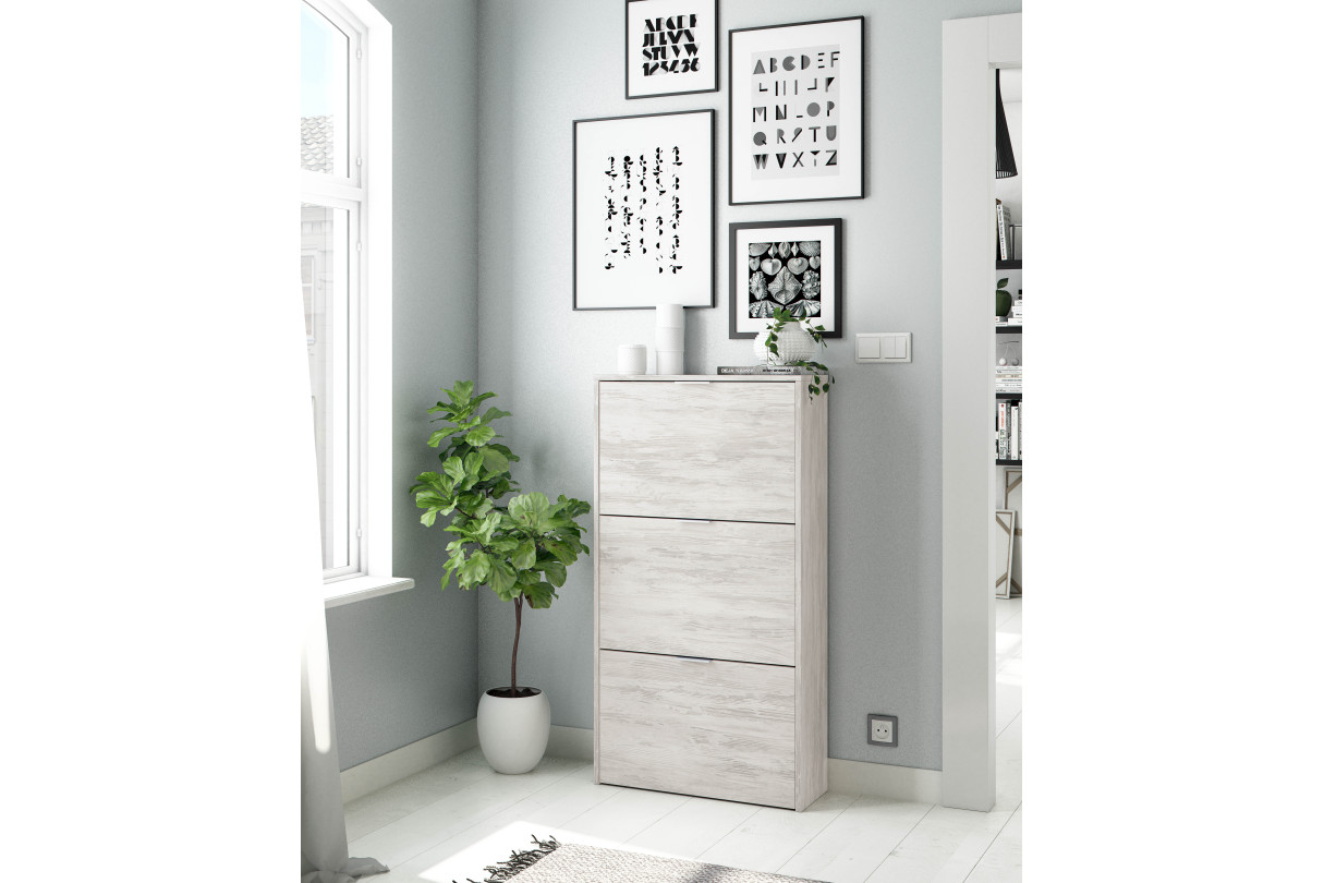 Meuble à chaussures NOLAN 3 abattants (18 Paires) L60cm x H113cm - Bois clair