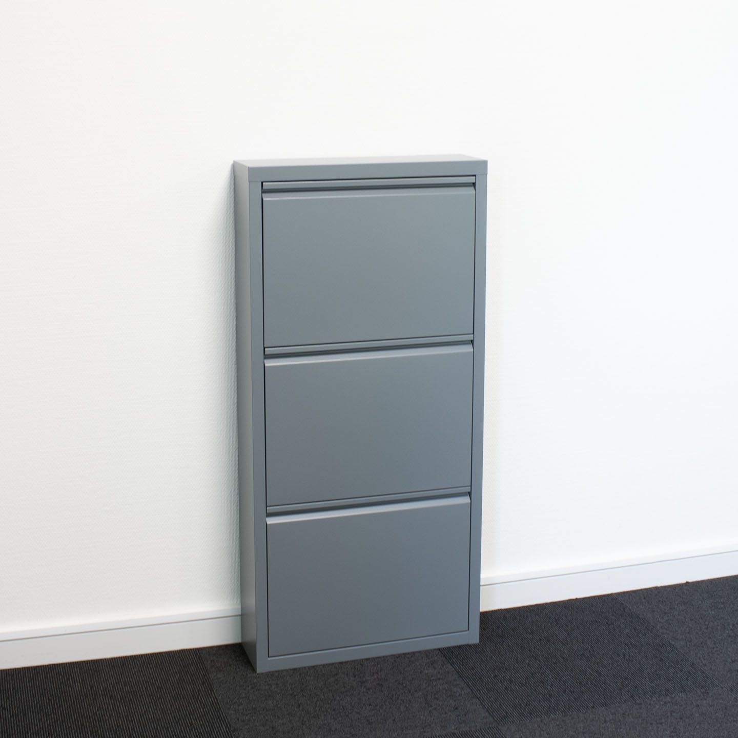 Meuble à chaussures Pisa avec 3 portes en métal gris. Livré entièrement assemblé, un meuble à chaussures de couleur grise apporte à la fois style et fonctionnalité à votre maison. Livré entièrement assemblé. Gris Ral 7031. Tiroir intérieur : L46/L29/P13 cm. Peut être posé au sol ou accroché au mur. Peut être utilisé individuellement. Les portes s'ouvrent simultanément. Ce produit est créé avec un souci du détail, ce qui garantit à la fois un attrait esthétique et une grande durabilité. Il est conçu dans un souci à la fois de fonctionnalité et de style, ce qui en fait le choix parfait pour n’importe quelle pièce de votre maison. Les matériaux utilisés sont de haute qualité, ce qui confère au produit une longue durée de vie et lui permet de résister à une utilisation quotidienne. Que ce soit pour le rangement ou comme ajout décoratif, ce produit rehaussera votre décor et apportera plus de confort et d'élégance à votre maison.
