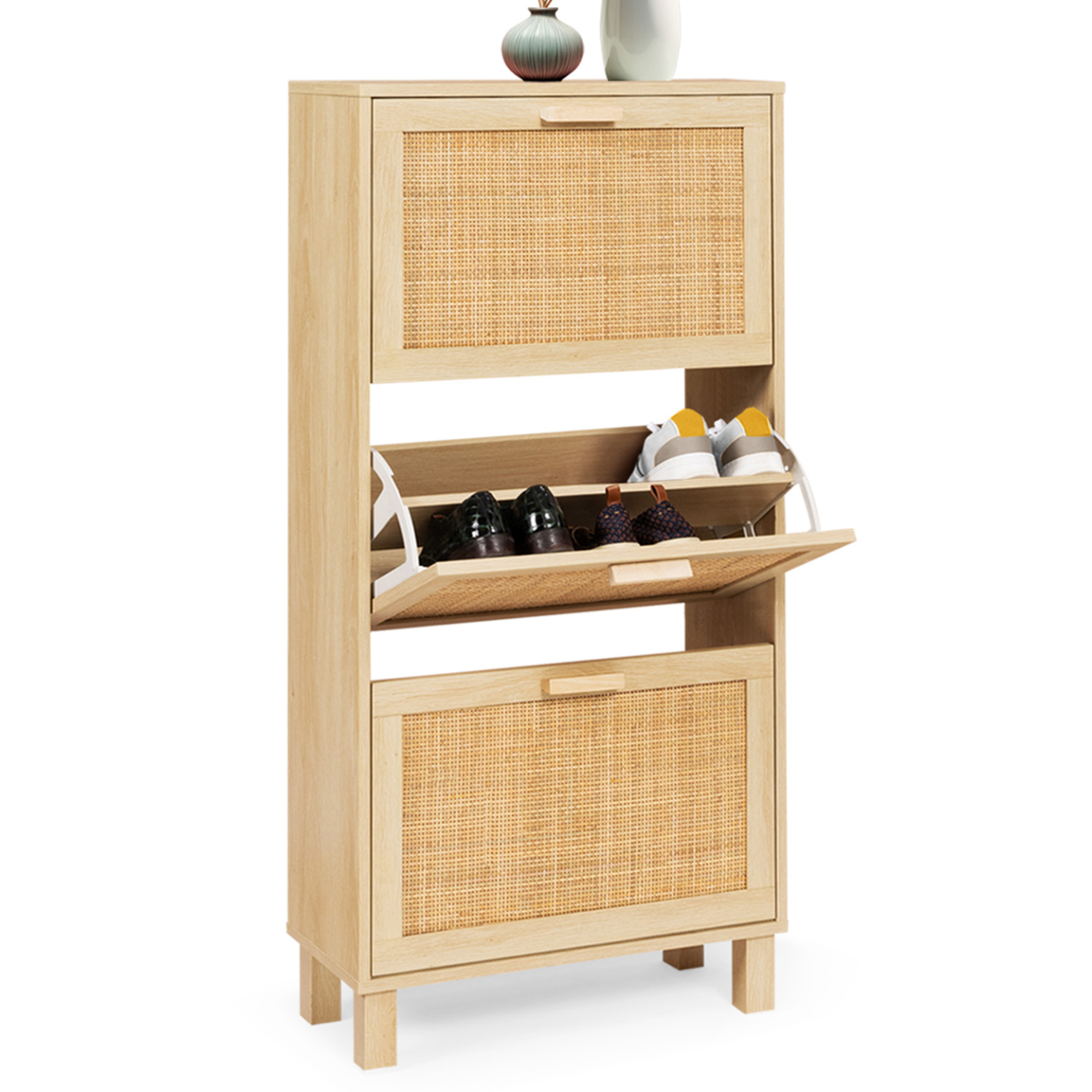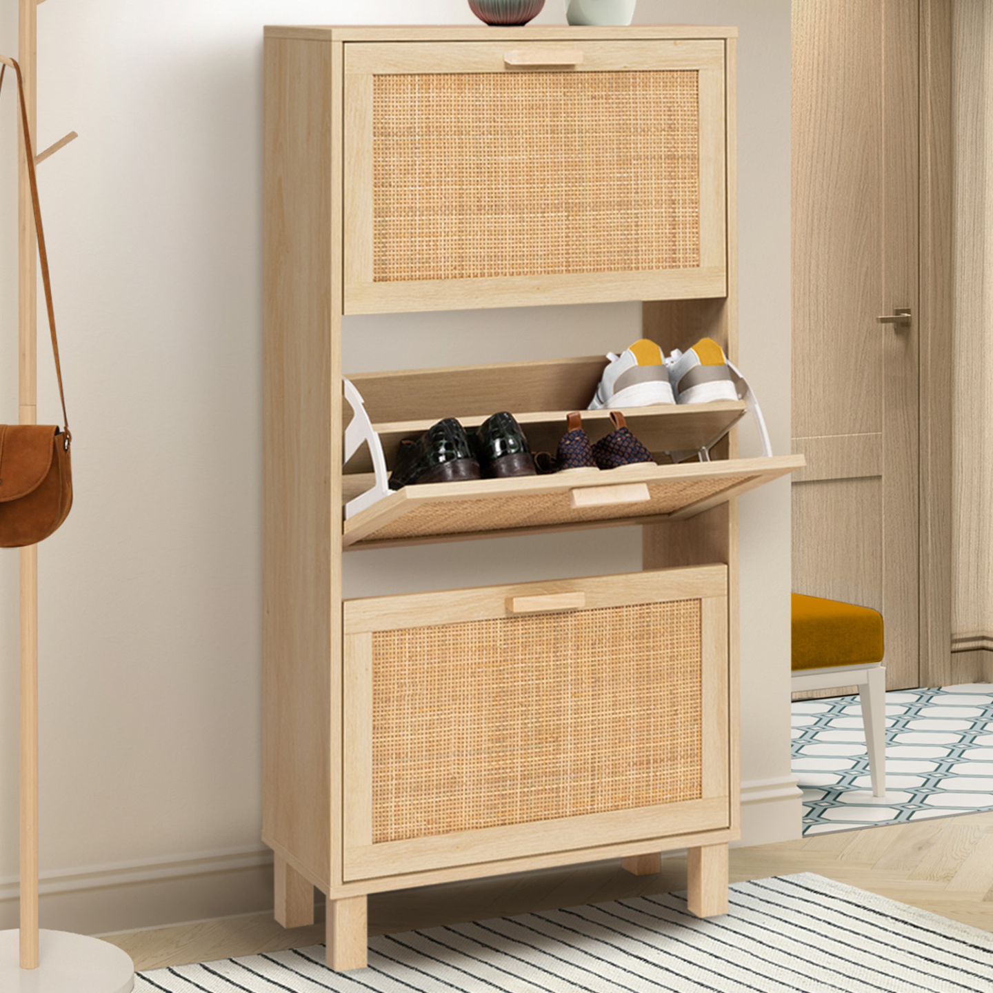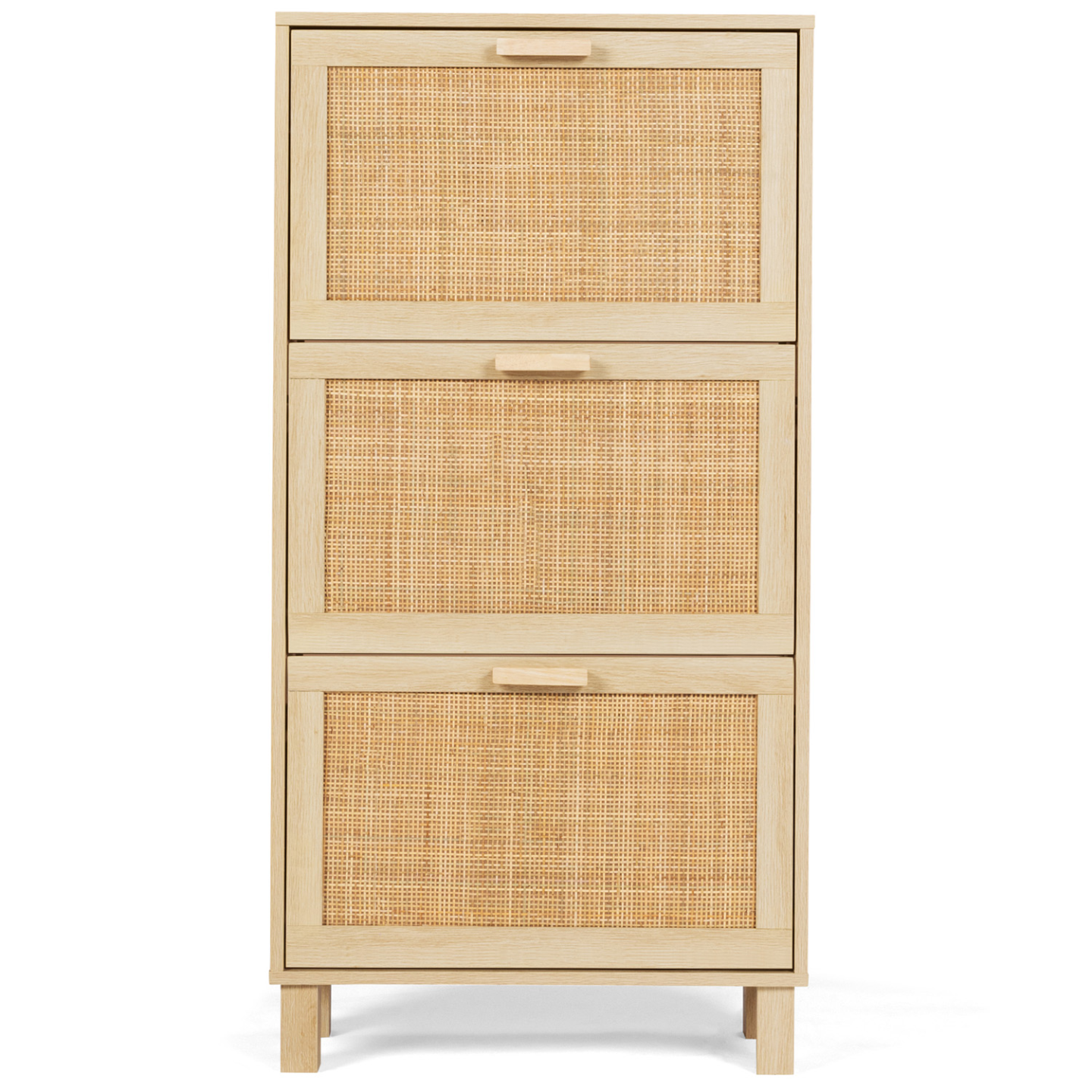 Meuble à chaussures vintage ELIN 3 portes effet naturel cannage pour un rangement moderne et fonctionnel