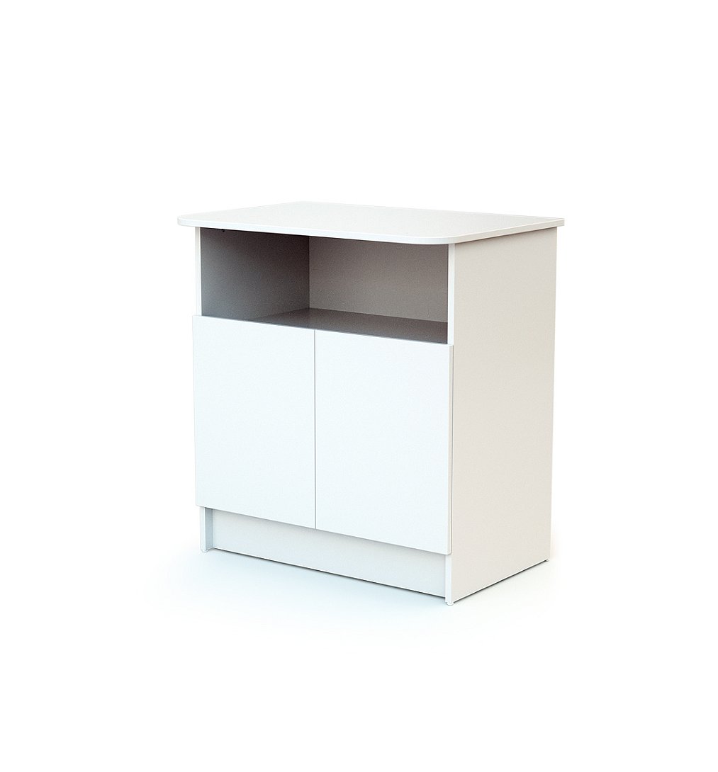 Meuble de rangement avec plan à langer. Un meuble de rangement sobre et pratique pour une chambre de bébé toujours bien rangée. Avec ses 2 portes, sa niche ouverte et son plan à langer amovible, il évolue au rythme de l’enfant et sera utile longtemps.