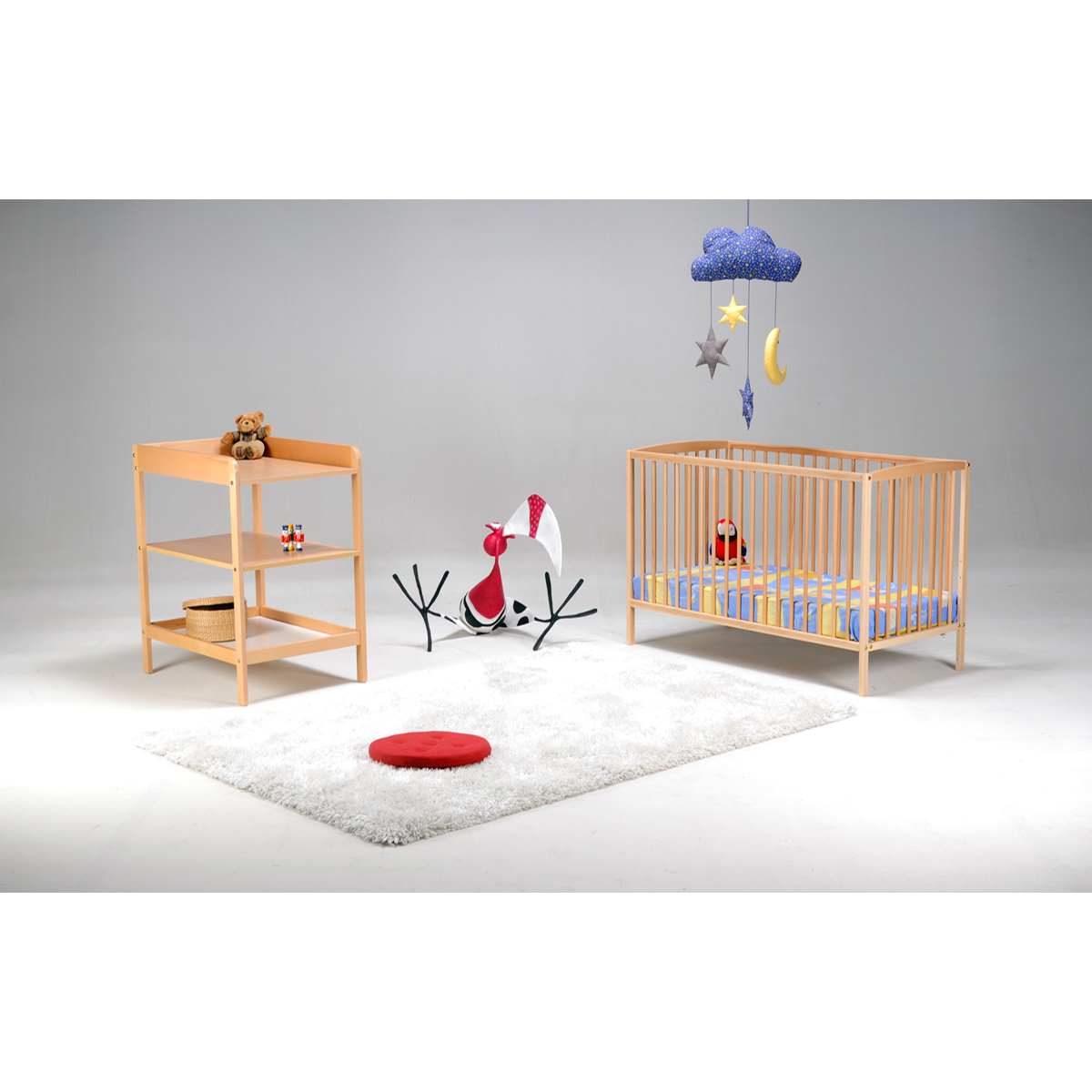 Meuble à langer Weber Industries Ludo - Vernis naturel doté de 2 étagères, idéal pour le changer et habiller votre enfant en toute sécurité et de façon optimisée car toutes les affaires se trouvent au même endroit.