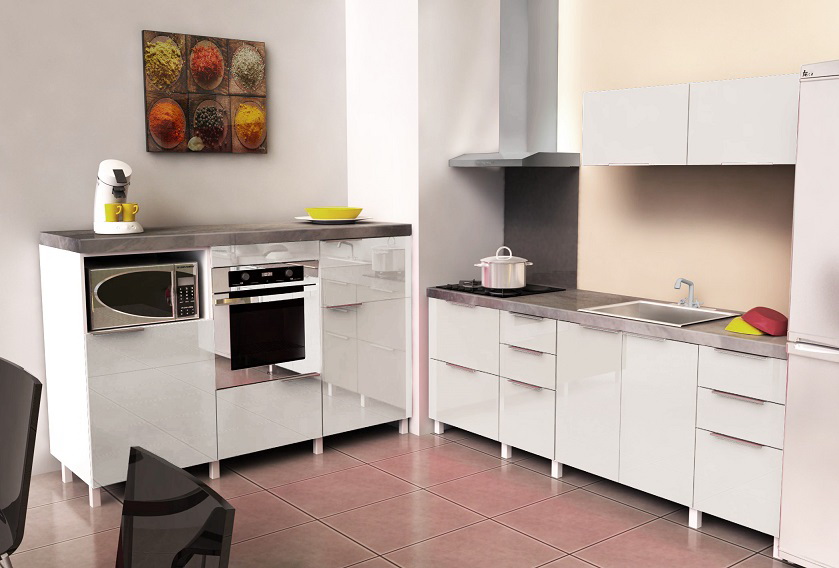 KIT complet : Caisson en mélaminé Blanc, porte haute brillance avec charnières, pieds. Fabrication Française Porte / Façade : panneaux de particules haute densité, épaisseur 16mm, recouvert PP/PVC Poids : 21 kg Dimensions (L x P x H) : 80 x 51.6 x 84 cm Caisson : panneaux de particules mélaminées (E1) blanc, épaisseur 16mm Entretien : chiffon doux et sec