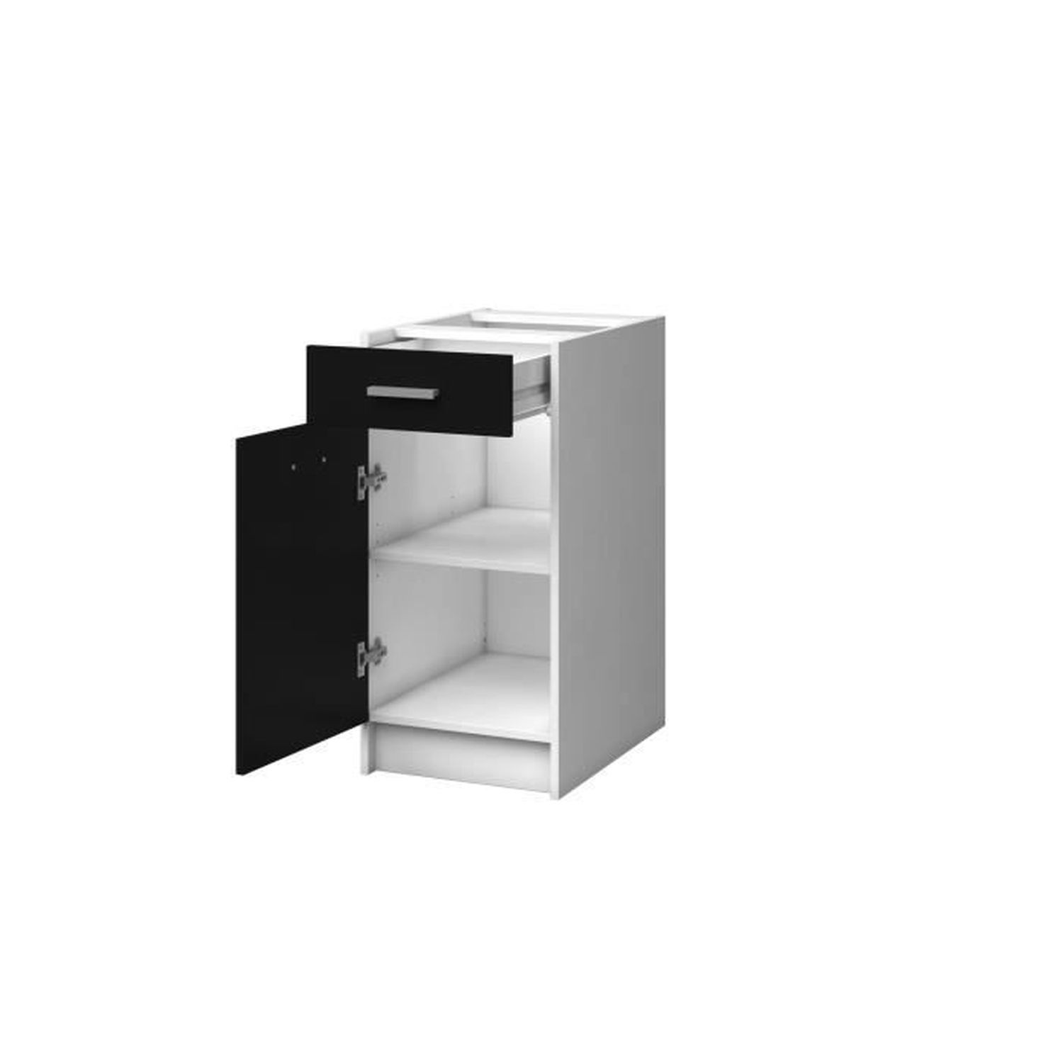 Meuble bas de cuisine 40 cm 1 Tiroir - Noir Mat