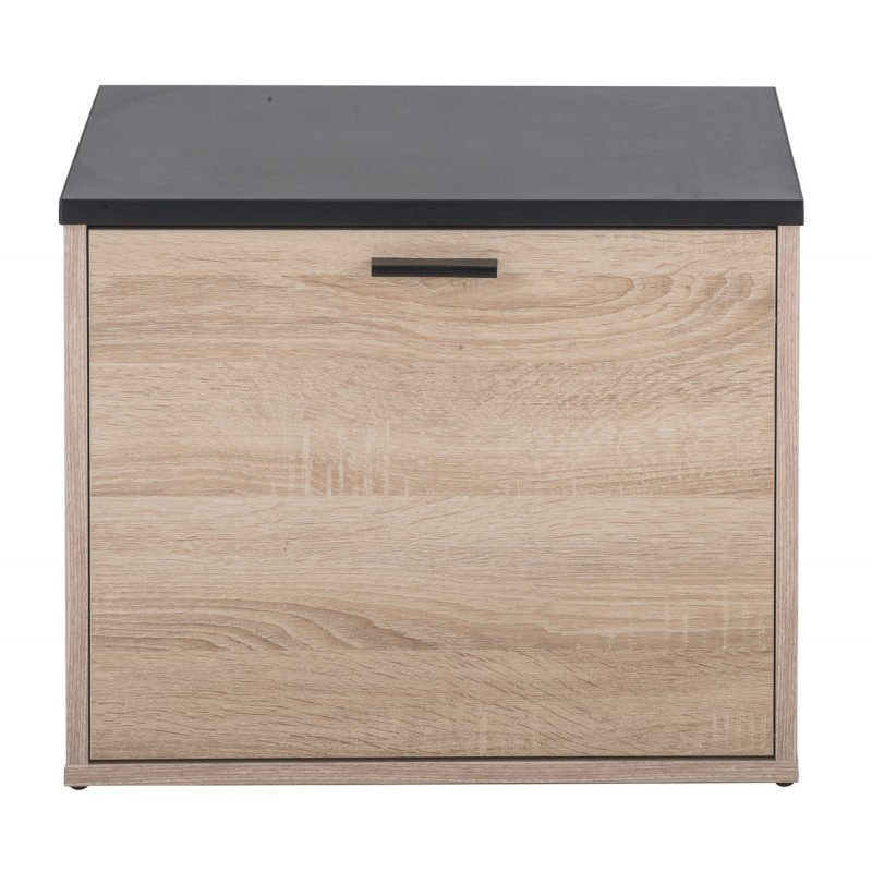 Ce beau meuble à chaussures en chêne naturel de la collection Lohan est parfait pour un intérieur moderne. Il peut contenir jusqu'à 9 paires de chaussures. Aménagement : - 1 Abattant - 3 rangées de rangement de chaussures - Dessus coloris noir. - Meuble percé pour l'aération Dimensions : - Meuble : L 53.5 x H 43.5 x P 35.5 cm - Structure en panneaux de particules de bois mélaminé épaisseur 16 mm qualité E1 - Tablettes en panneaux de particules mélaminé ép. 10 mm, qualité E1 - Système range-chaussures pivotant en plastique - Meuble Livré démonté (montage facile) - Garantie 2 ans - Meuble Eco-conçu - Fabriqué en France