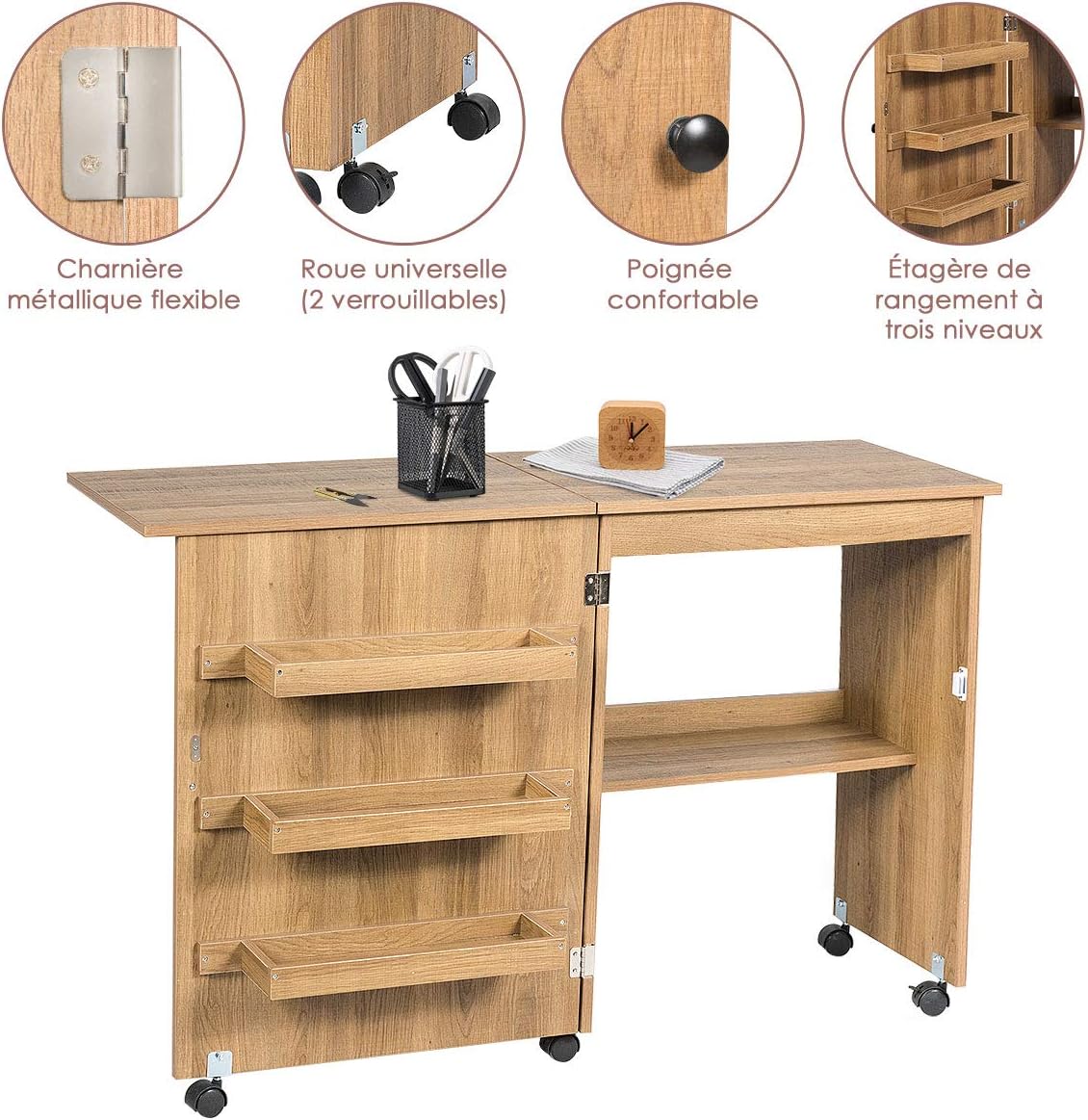 | Libellé | Meuble couture, table couture avec 3 étagères et 1 plateau machine à coudre, 2 en 1 bureau pliable |
