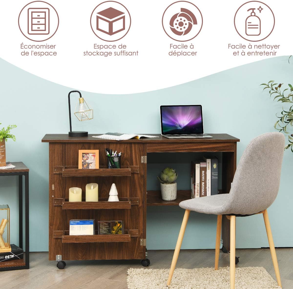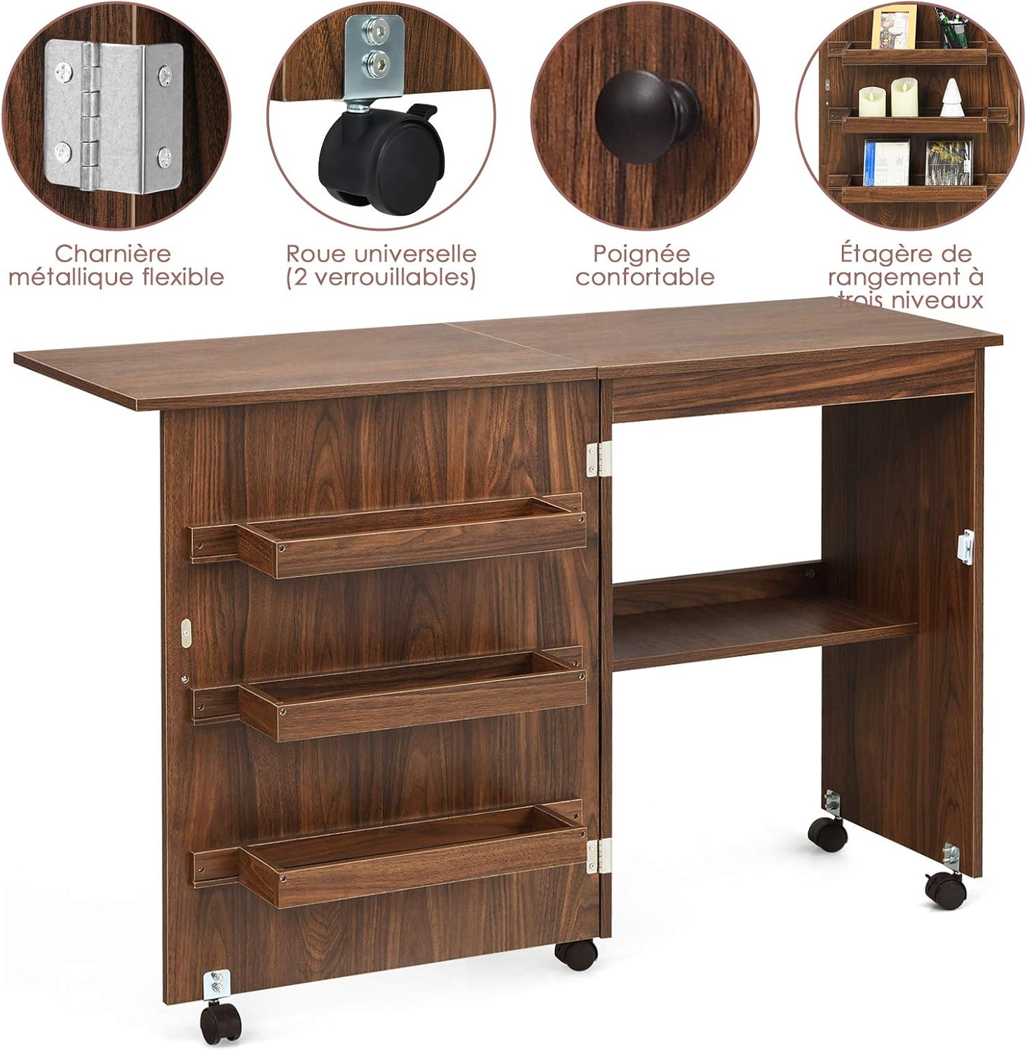 | Libellé | Meuble couture, table couture avec 3 étagères et 1 plateau machine à coudre, 2 en 1 bureau pliable |