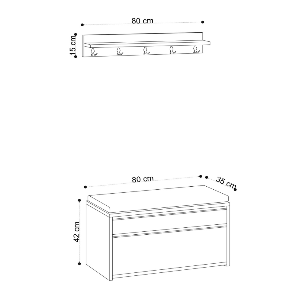 | Libellé | Meuble d'entrée avec porte-manteau mural et coffre de rangement LARVIK |