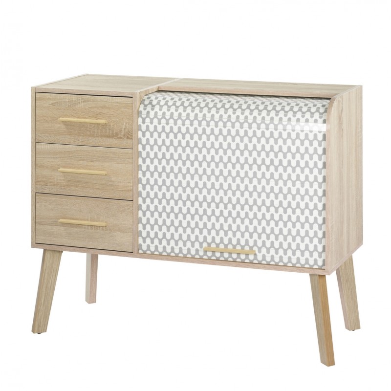 Meuble d'Entrée Chêne 3 Tiroirs Chêne - Coloris Rideau: Vagues Grises 810