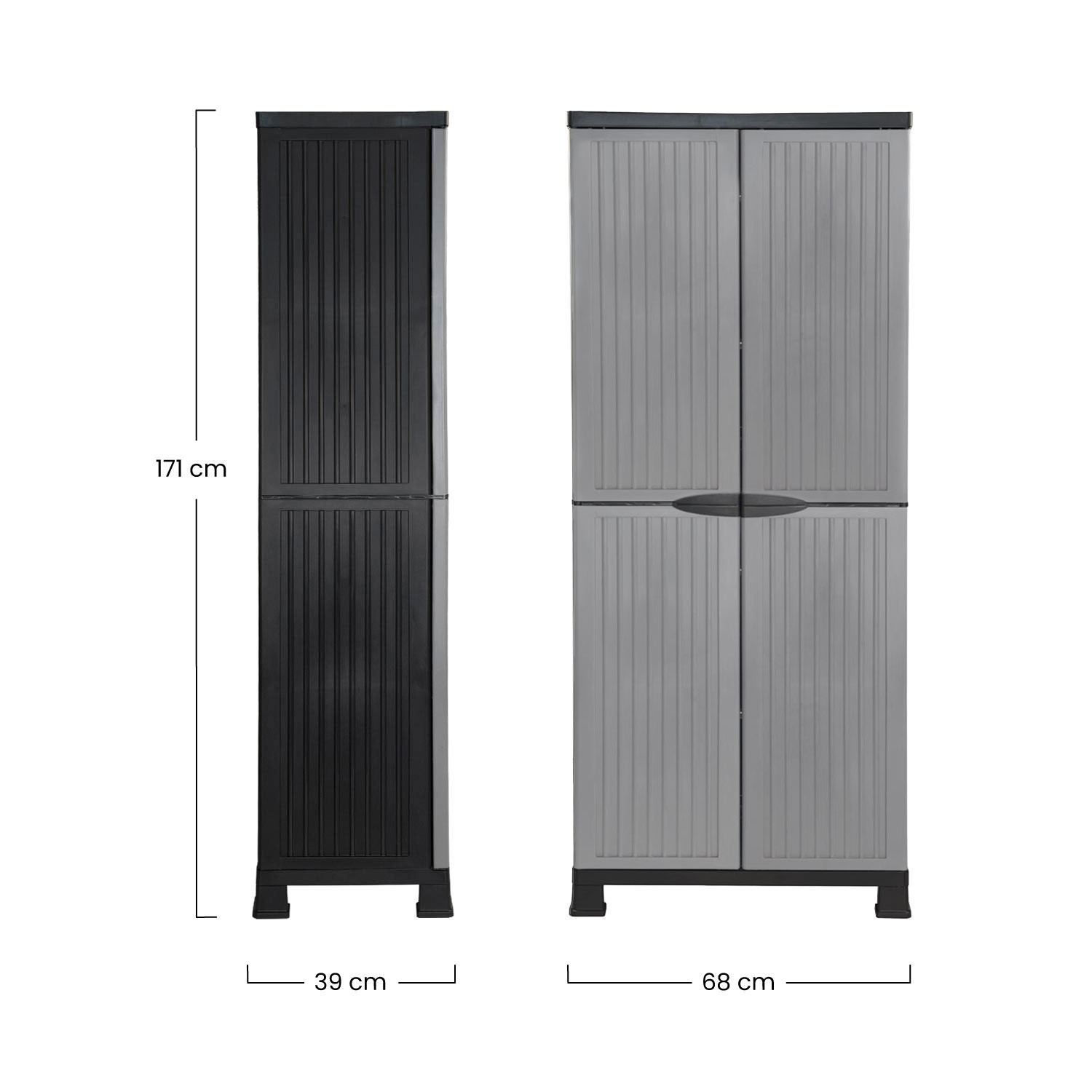 Armoire d'extérieur en résine avec 3 étagères de 7house, la meilleure option pour le stockage et le rangement à la maison et dans les espaces de travail. Réalisée en résine, un matériau résistant à la poussière et à l'humidité. Parfaite pour les terrasses, les jardins, les porches ou les garages. Divisé en 3 étagères horizontales d'une charge maximale de 20 kg par niveau où vous pouvez placer des produits de nettoyage, des récipients ou des outils. Vous pouvez même l'utiliser comme garde-manger. Les poignées de ses 2 portes battantes sont ergonomiques, ce qui permet de les ouvrir facilement. Cette armoire en résine au design esthétique et fonctionnel s'harmonisera avec votre terrasse ou votre mobilier de jardin. Un rangement sûr et robuste. Elle supporte jusqu'à 70 kg pour ranger et protéger tous vos accessoires et outils de jardin. *Veuillez noter que les images, les mesures et les couleurs de certains de nos produits sont données à titre indicatif. Les écrans peuvent parfois présenter de légères variations d'affichage dues au calibrage, à l'angle, à l'éclairage et à d'autres facteurs.