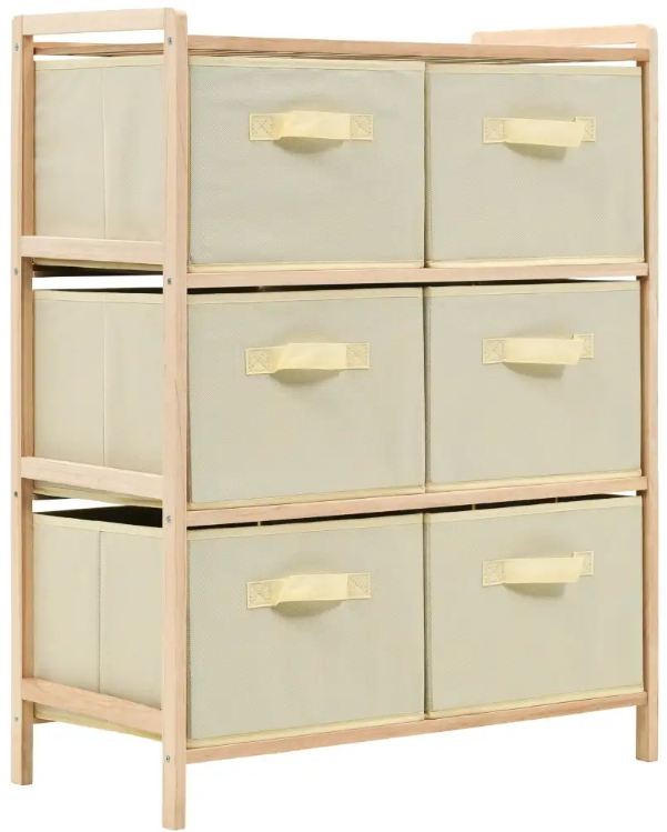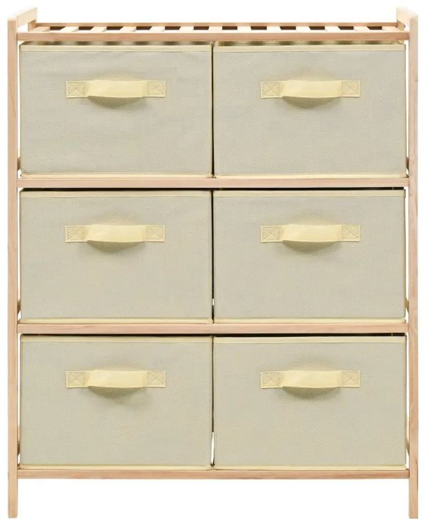 Voici un meuble de rangement pour chambre d'enfant ou pour le bureau qui sera parfait pour ranger des livres, jouets, documents ou d'autres objets. Elle dispose de 6 tiroirs en textile non tissé. Ce modèle existe également en d'autres dimensions. D'autres meubles du même style peuvent s'harmoniser pour créer une décoration harmonieuse. Dimensions : L 59 x H 75 x P 28 cm Couleur : Beige Matériau : Bois massif et tissu Equipements : 6 tiroirs