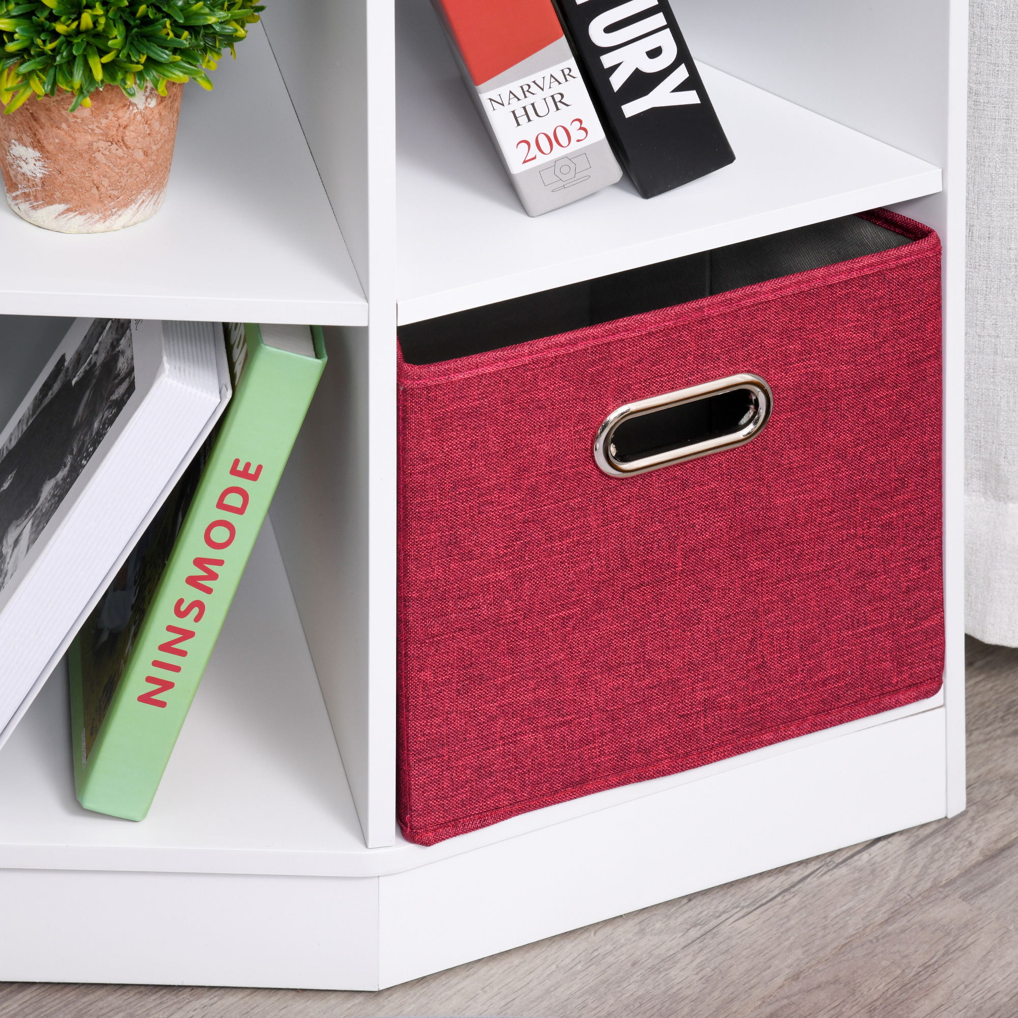 Disposez d'un espace de rangement supplémentaire à votre domicile en acquérant ce meuble de rangement d'angle, conçu en MDF classe E1. De design comtemporain et épuré, il s'intégrera parfaitement dans l'angle de l'espace intérieur de votre choix (salon, chambre, bureau, etc...). Les 9 niches (dont 3 avec tiroir amovible en non-tissé) vous permettront de ranger des livres, accessoires et décorations