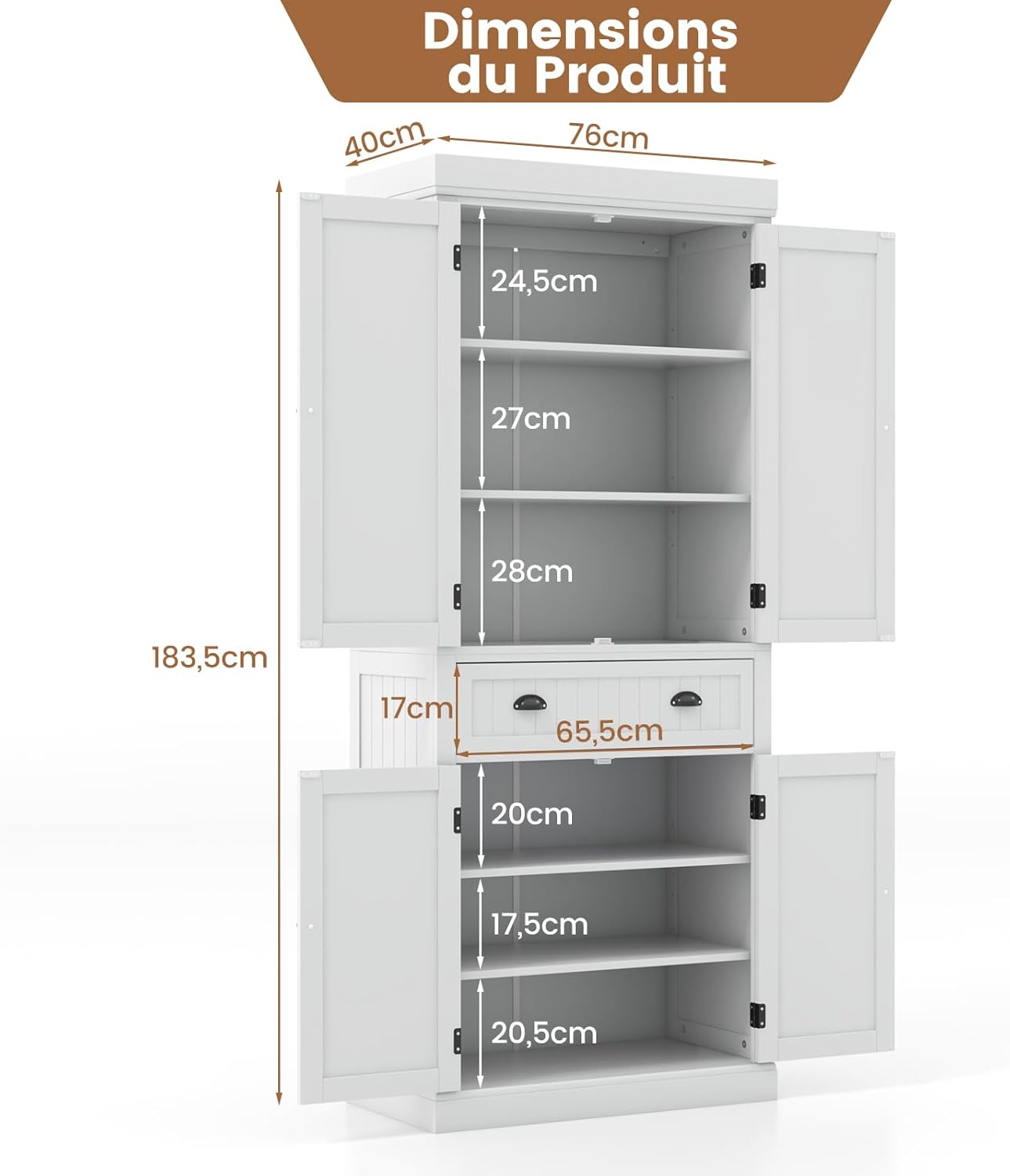 Dimensions totales : 76 x 40 x 183 cm (L x l x H)