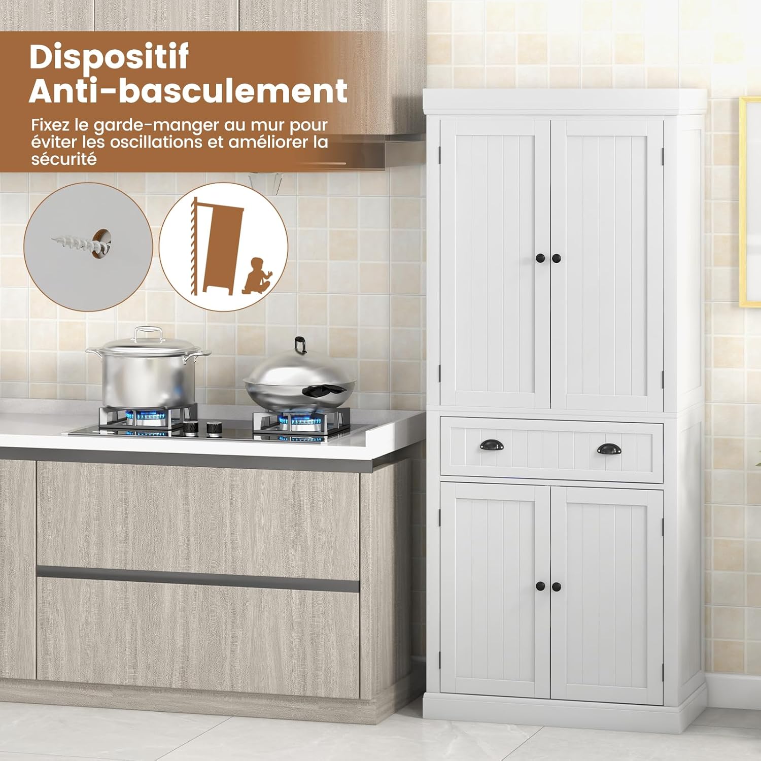 Armoire de cuisine à 4 portes avec tiroir permet d'organiser et de maintenir la propreté de votre maison