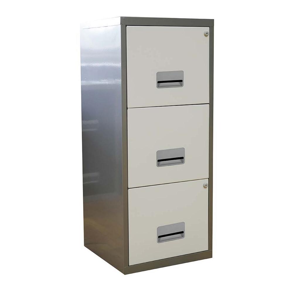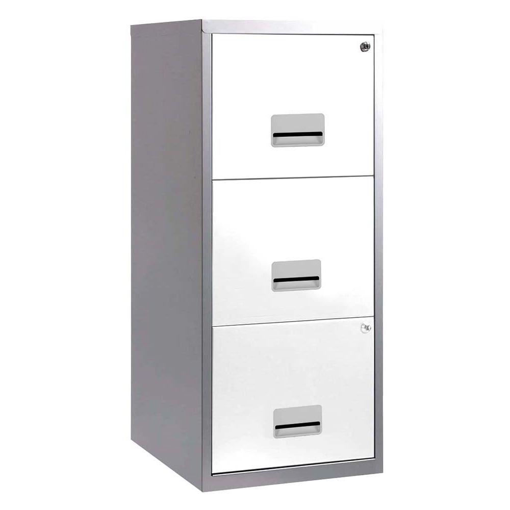 Meuble de rangement métal gris alu et blanc 3 tiroirs Bolan H 96cm