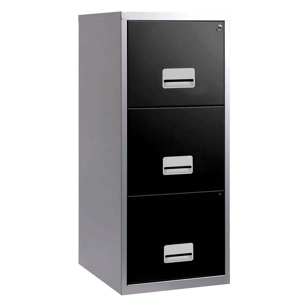 Meuble de rangement métal gris alu et noir 3 tiroirs Bolan H 96cm