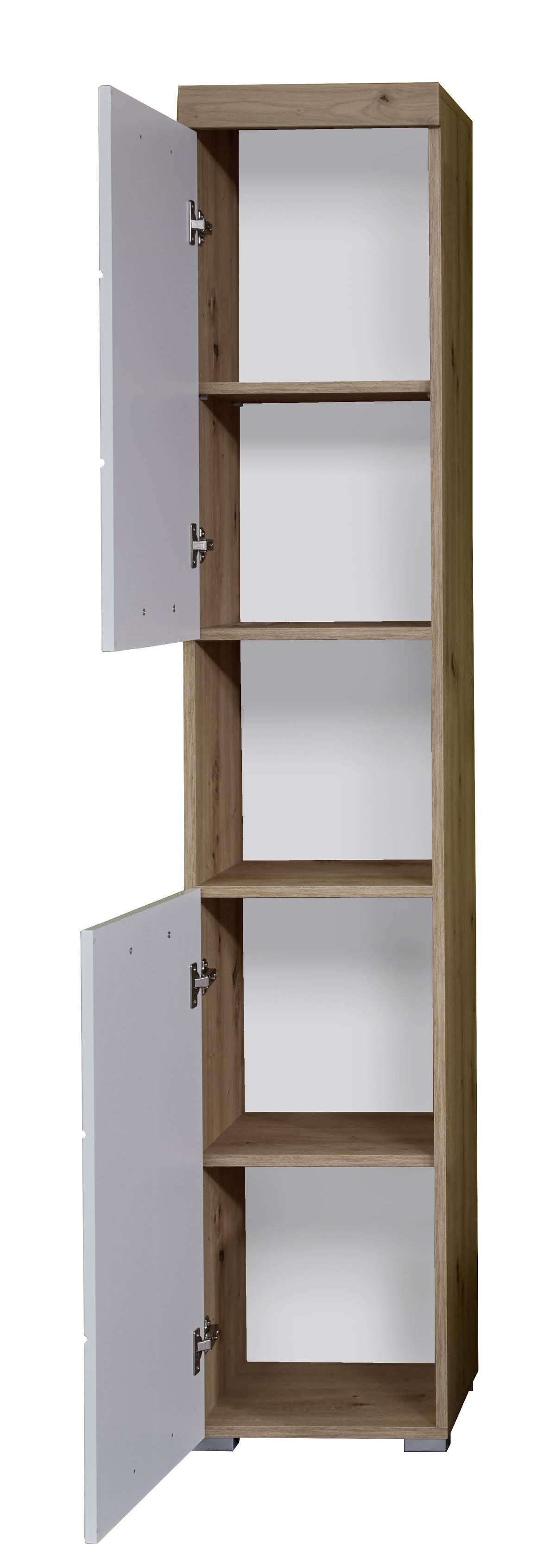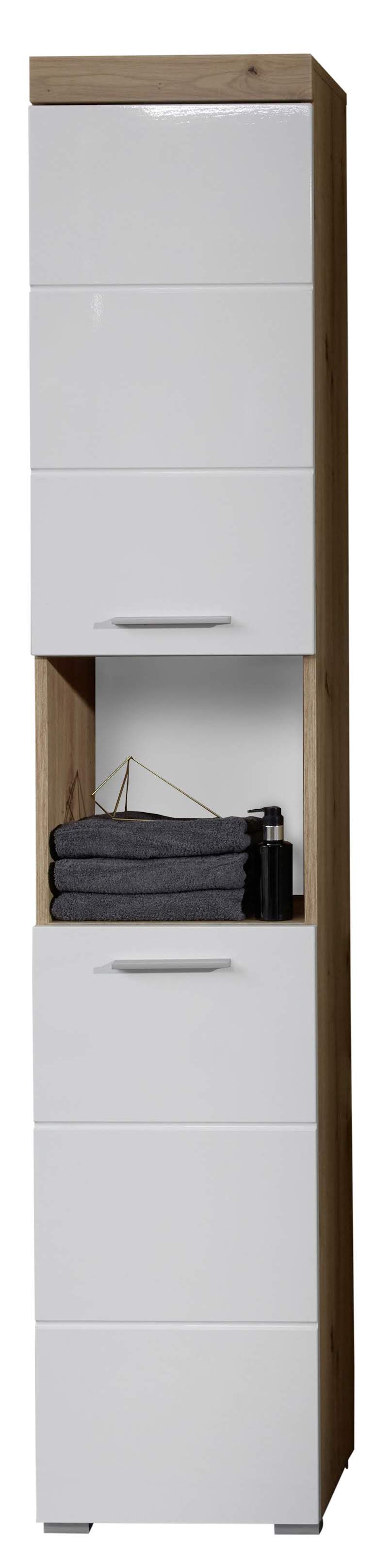 Meuble de salle de bain mélaminé - Meuble Colonne. Blanc/Chêne brillant. L/H/P : 37 / 190 / 31 cm