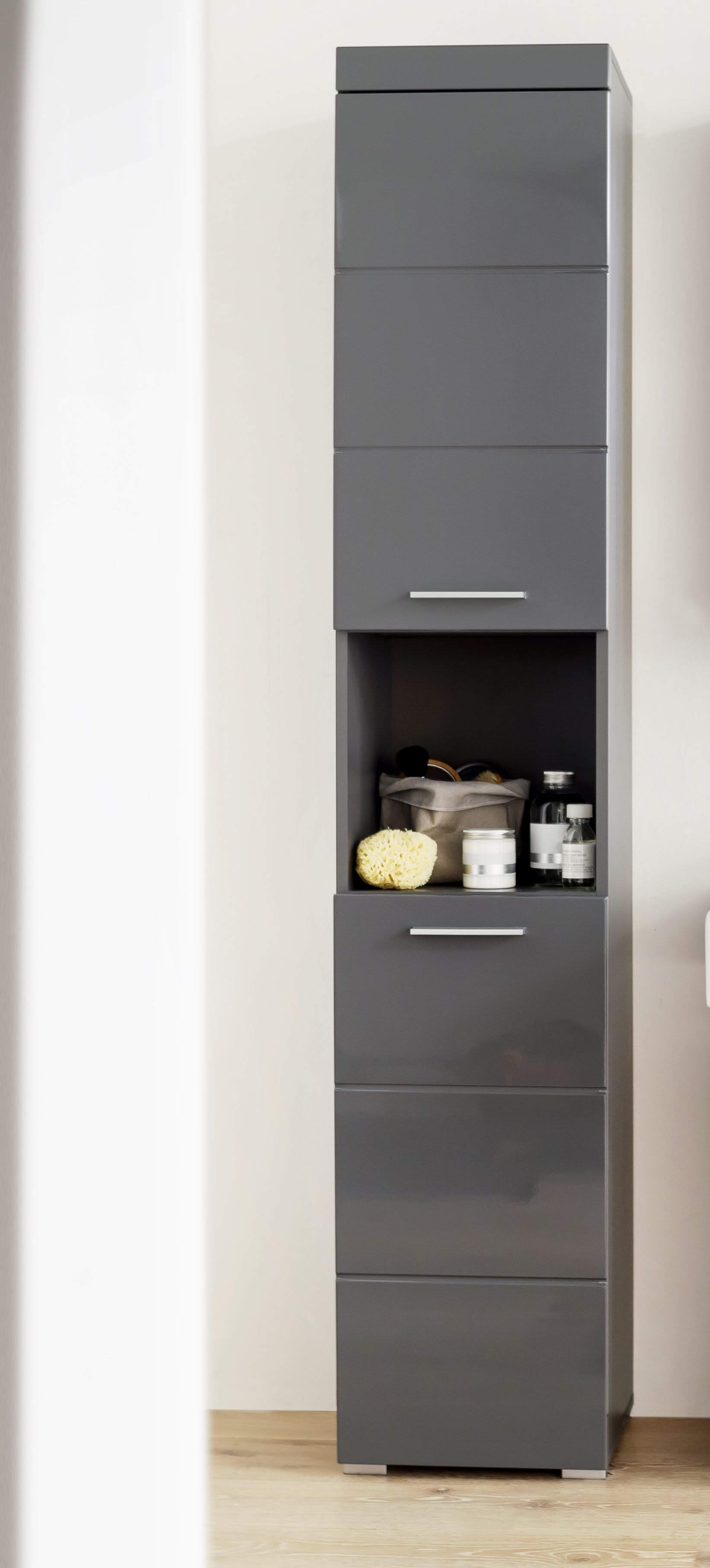 Meuble de salle de bain mélaminé - Meuble Colonne. Gris. L/H/P : 37 / 190 / 31 cm
