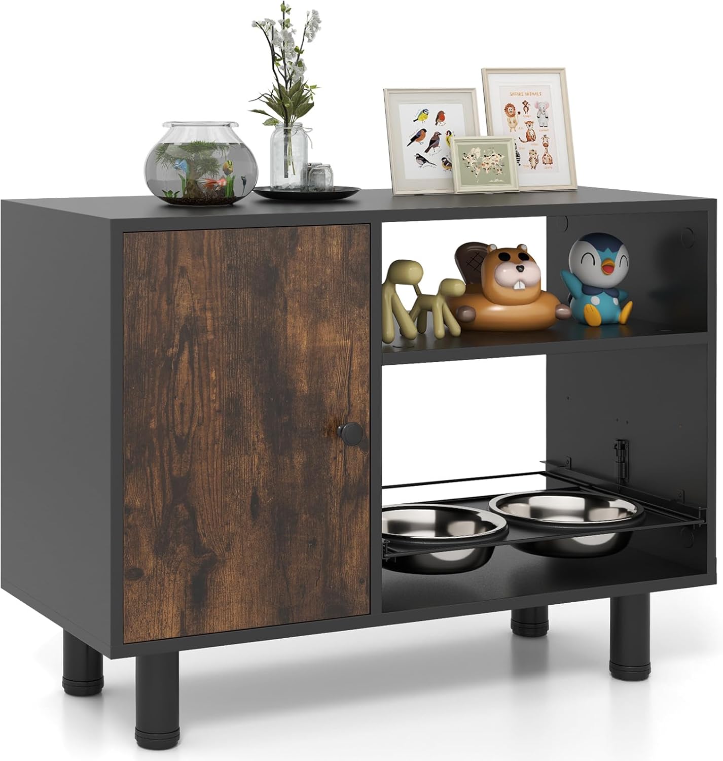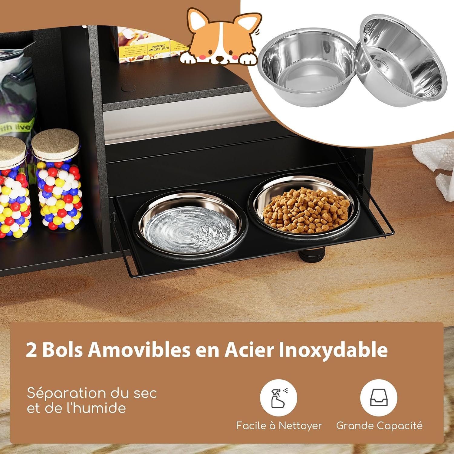 - Meuble gamelle pour Chien : Ce meuble innovant pour chien comprend une armoire fermée, 2 étagères ouvertes et un grand plan de travail, qui offre suffisamment d'espace pour les aliments pour chiens, les jouets ou vos articles pour un usage quotidien. Il peut être utilisé comme armoire à nourriture pour chien ou table console selon vos besoins.