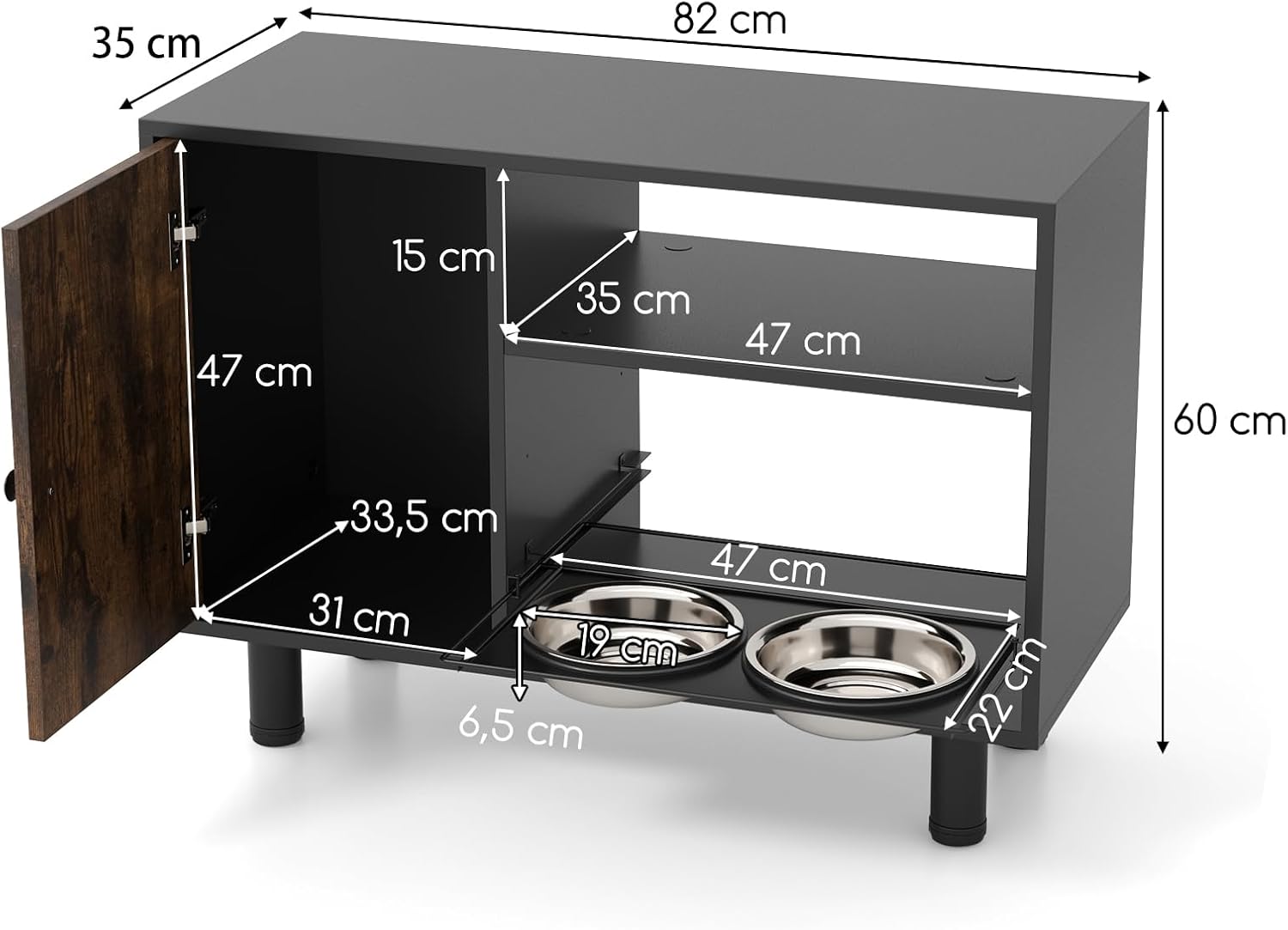 | Libellé | Meuble gamelle pour chien, meuble de rangement pour chiens avec hauteur réglable, 2 bols surélevés |