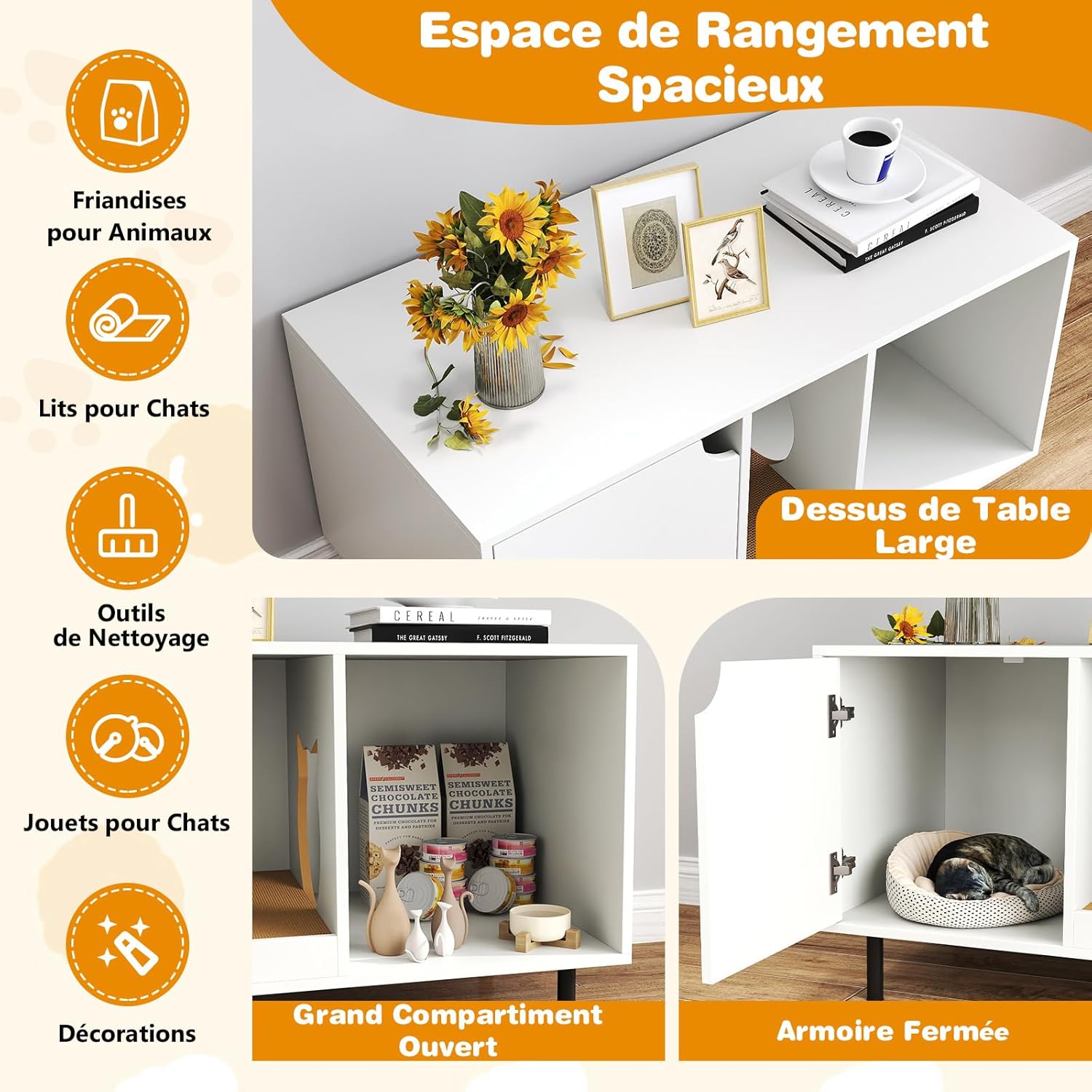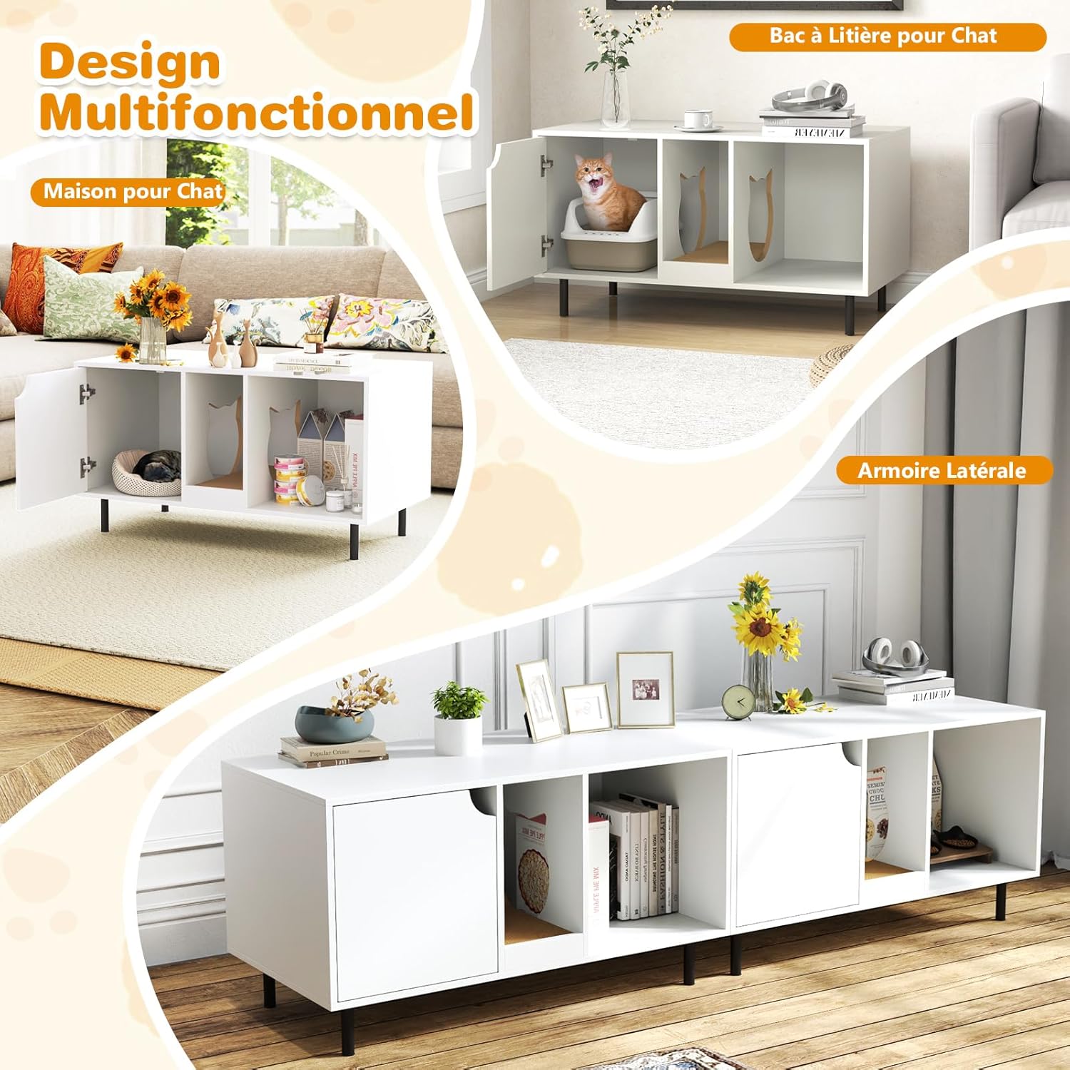 Utilisation multifonctionnelle comme armoire, maison pour chat ou table d'appoint