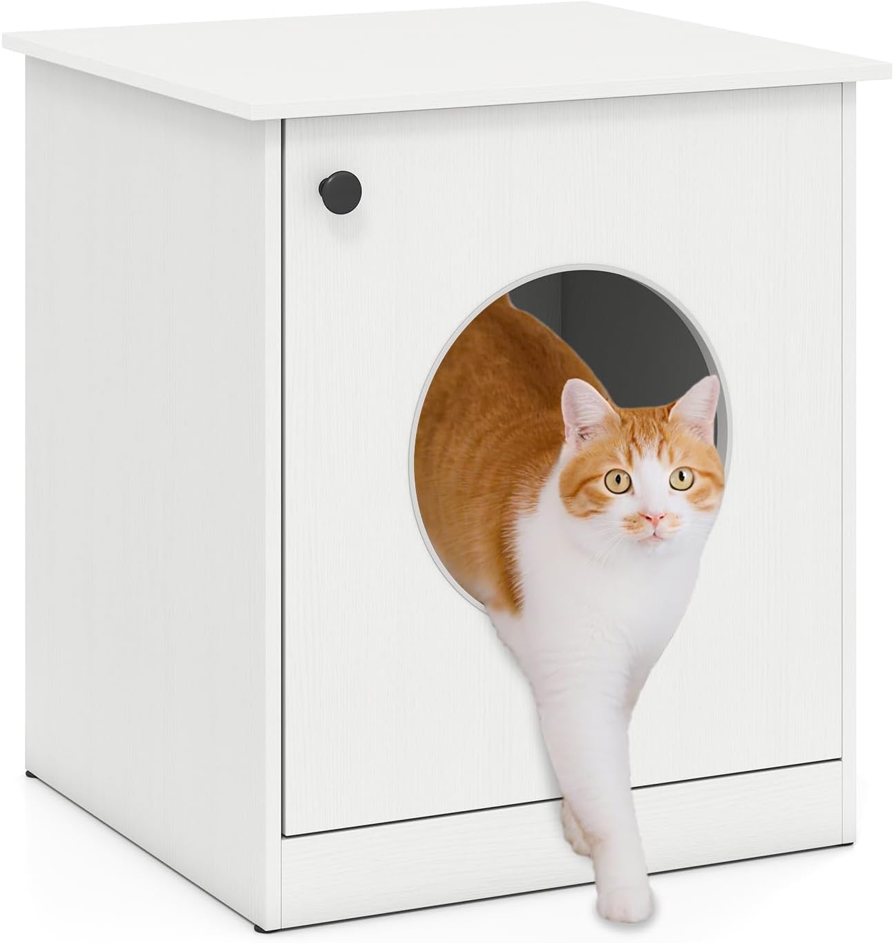 Améliorez l'espace de vie de votre chat avec ce meuble. Ce produit polyvalent sert de litière cachée pour chats, garantissant intimité et contrôle des odeurs. L'espace intérieur spacieux et la structure robuste offrent à votre ami félin un lieu confortable pour se détendre, jouer et se reposer. Profitez de la commodité de la poignée ronde, des surfaces lisses et des pieds antidérapants. Disponible comme litière, coin confortable ou table basse et table de chevet pratique, le grain de bois blanc simple s'harmonise avec tous les styles de décoration.