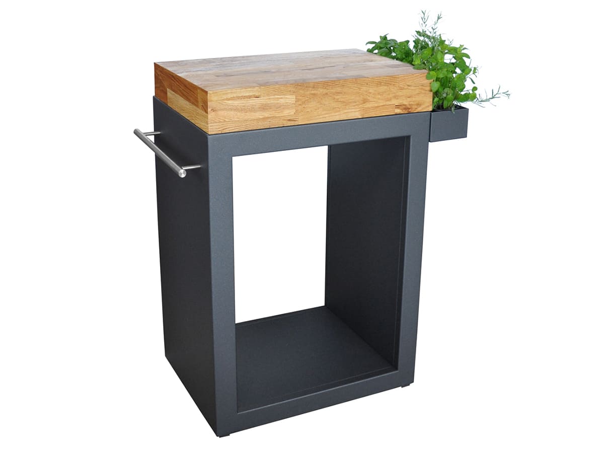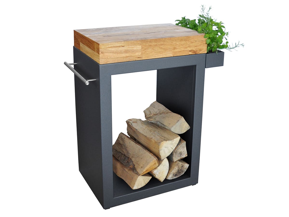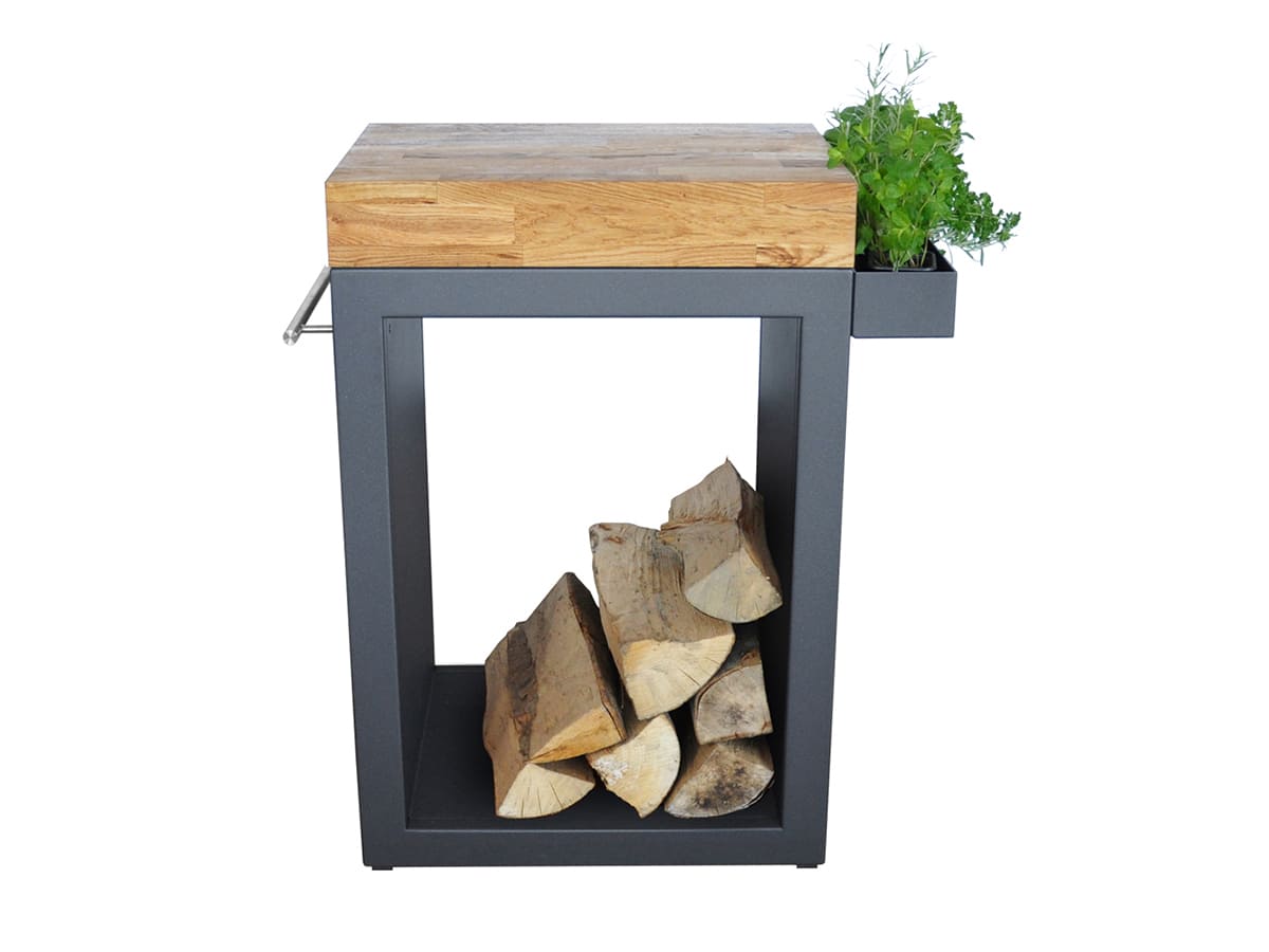 Table multifonction avec tablette en bois Artiss Design Très pratique pour accompagner et compléter votre brasero barbecue Artiss Design, cette table multifonction vous permettra de cuisiner en toute tranquilité. Sa tablette en bois est idéale pour poser couvert, plancha à découper, ou condiments. Elle possède également un petit bac pour planter quelques herbes fraîches. Le socle accueille vos petites bûches de bois. Dimensions ; 60 x 45 x 91 cm. Caractéristiques techniques Compatibilité:Universel Couleur:Gris Dimensions (L x l x H):60 x 45 x 91 cm Garantie:2 ans Marque:ARTISS DESIGN Matière(s):Acier Poids:57,2 kg