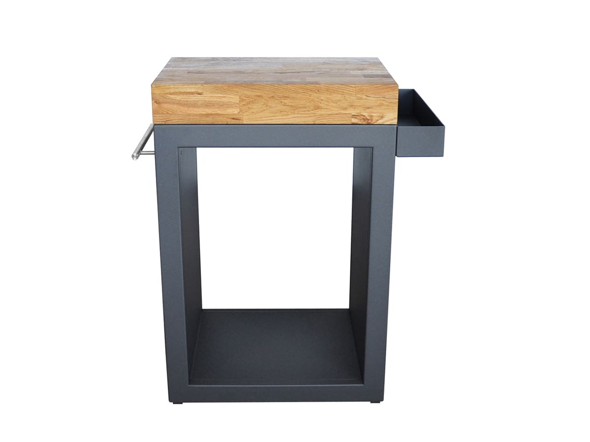 Table multifonction avec tablette en bois Artiss Design Très pratique pour accompagner et compléter votre brasero barbecue Artiss Design, cette table multifonction vous permettra de cuisiner en toute tranquilité. Sa tablette en bois est idéale pour poser couvert, plancha à découper, ou condiments. Elle possède également un petit bac pour planter quelques herbes fraîches. Le socle accueille vos petites bûches de bois. Dimensions ; 60 x 45 x 91 cm. Caractéristiques techniques Compatibilité:Universel Couleur:Gris Dimensions (L x l x H):60 x 45 x 91 cm Garantie:2 ans Marque:ARTISS DESIGN Matière(s):Acier Poids:57,2 kg