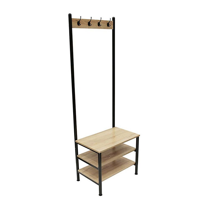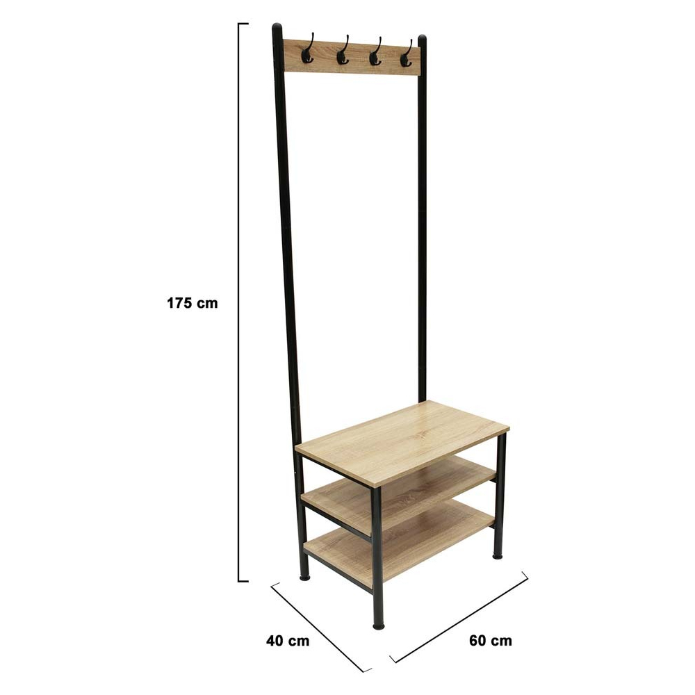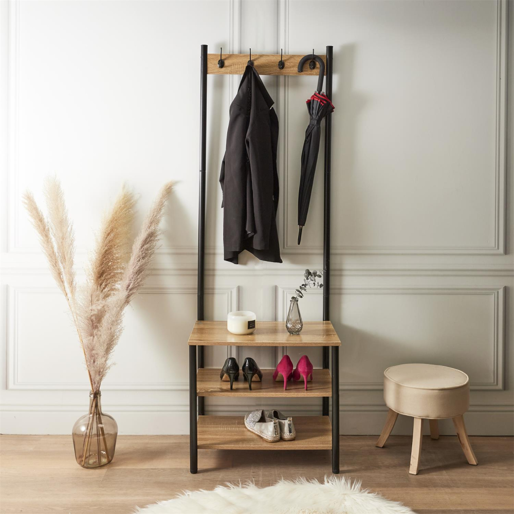 Organisez au mieux la vie de la famille avec ce meuble portemanteau. - 3 étagères - 4 crochets - Design industriel - Dimensions : 60x175x40 cm - Poids : 10 kg - Composition : Particules de bois - Acier