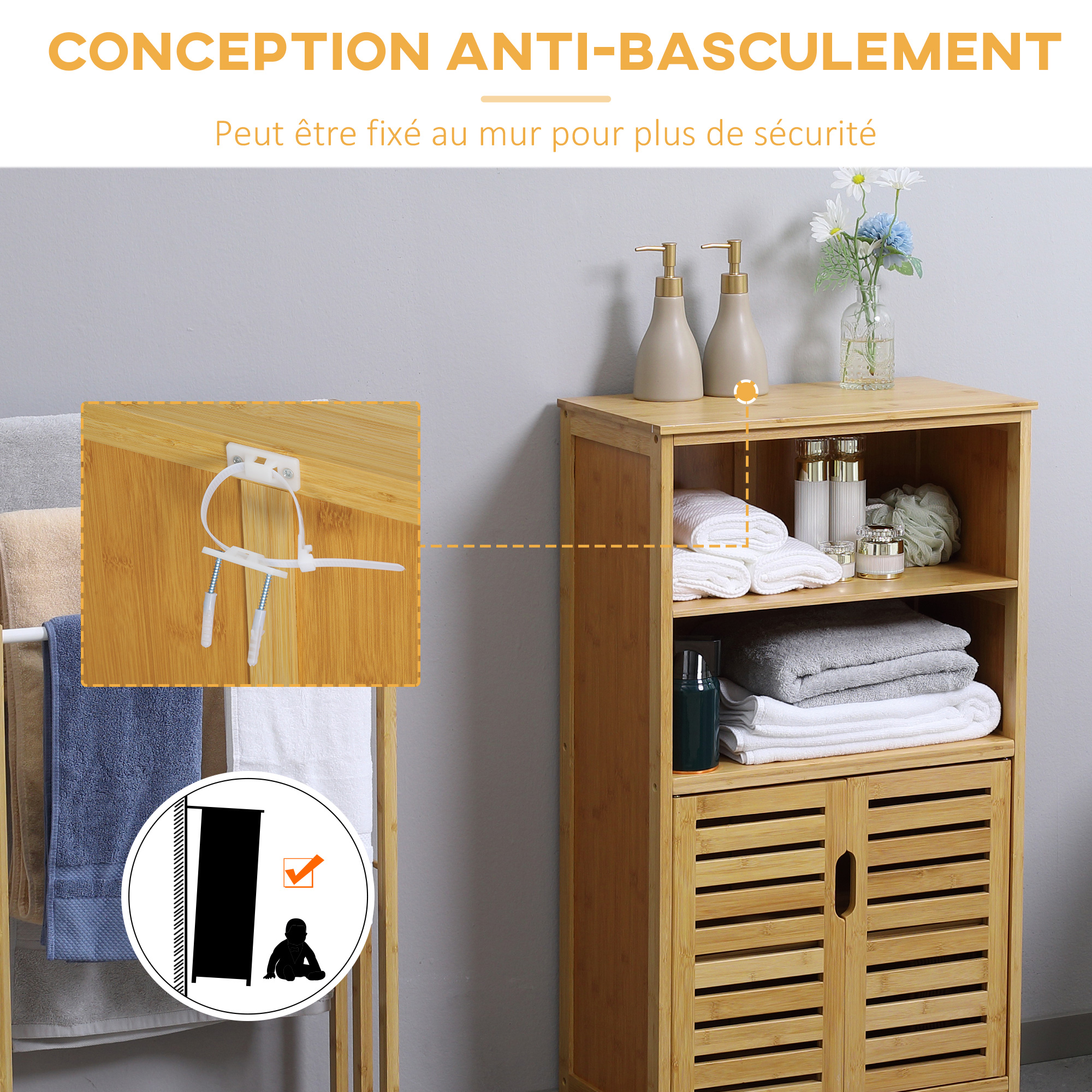 - Rangement de salle de bain sur pieds afin de vous faciliter l'entretien