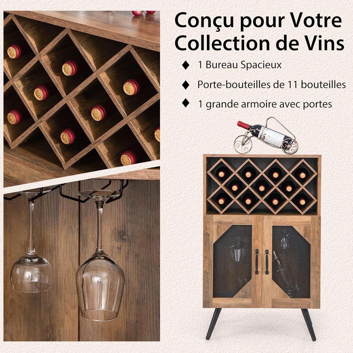 Étagère à vins et porte-verres de 11 bouteilles pour bien organiser vos collections d'alcool