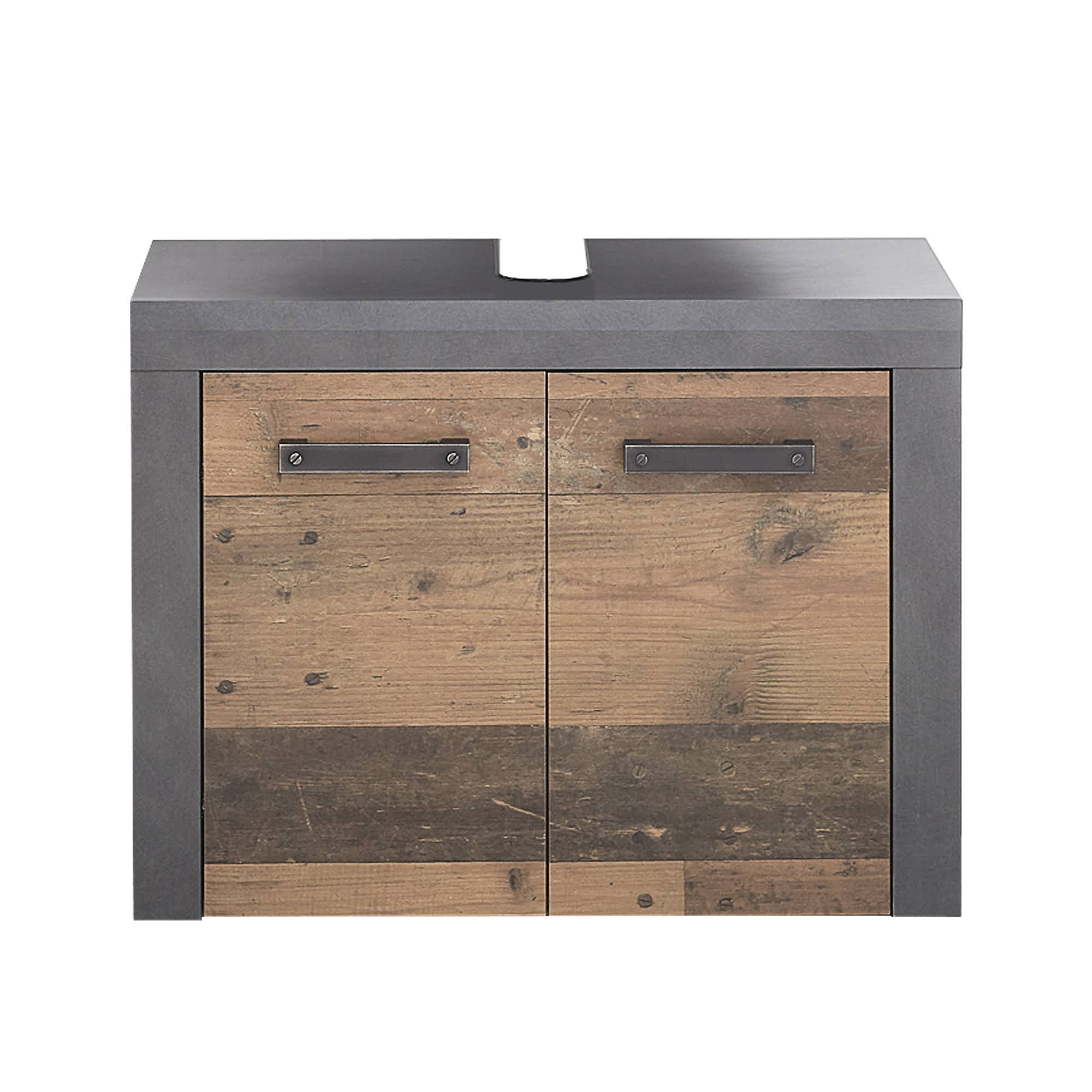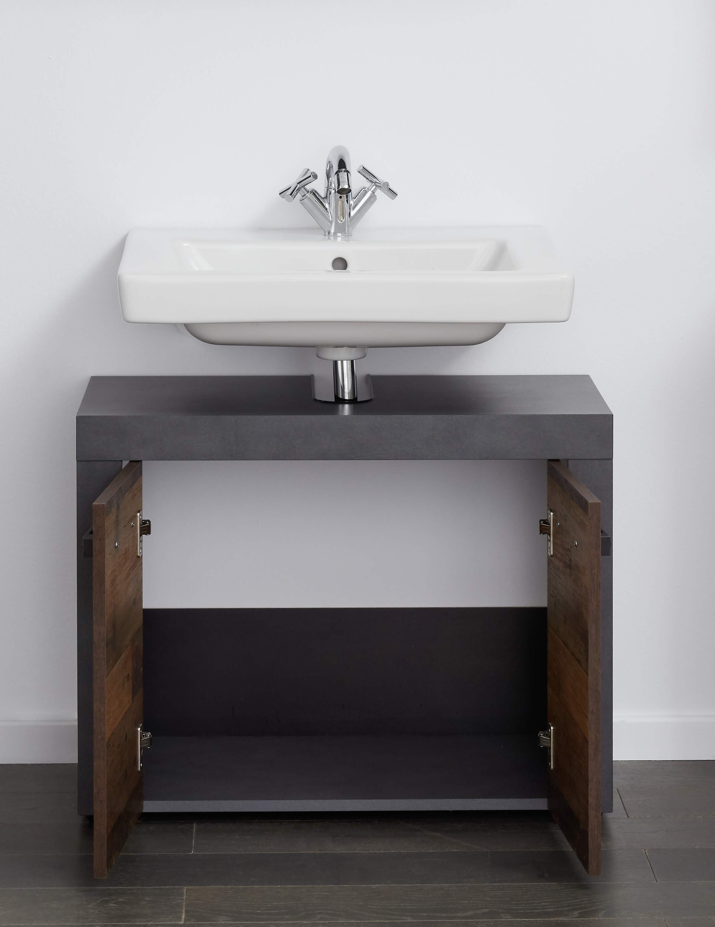 Meuble salle de bain. Meuble sous vasque mélaminé coloris noyer et gris ciment. L - H - P : 72 | 56 | 34 cm.