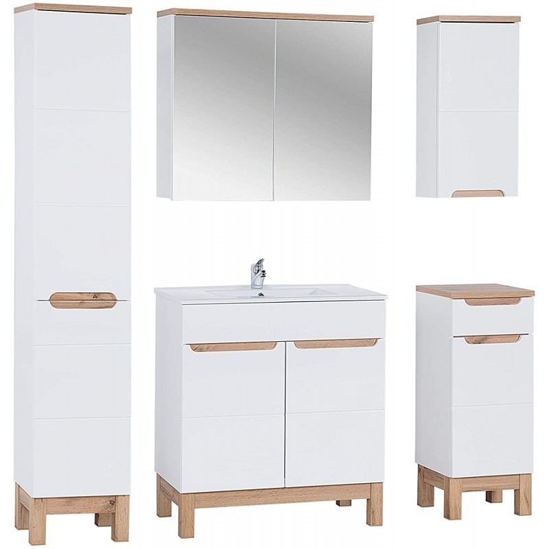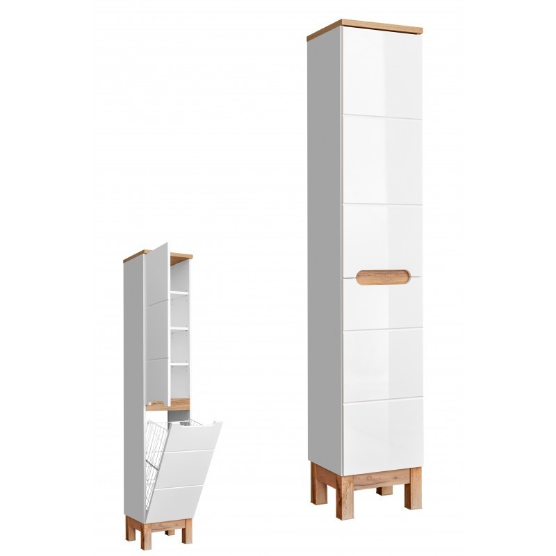 Meuble Salle de bain porte avec charnière 187x35x33cm BALI BLANC 804 moderne de haute qualité