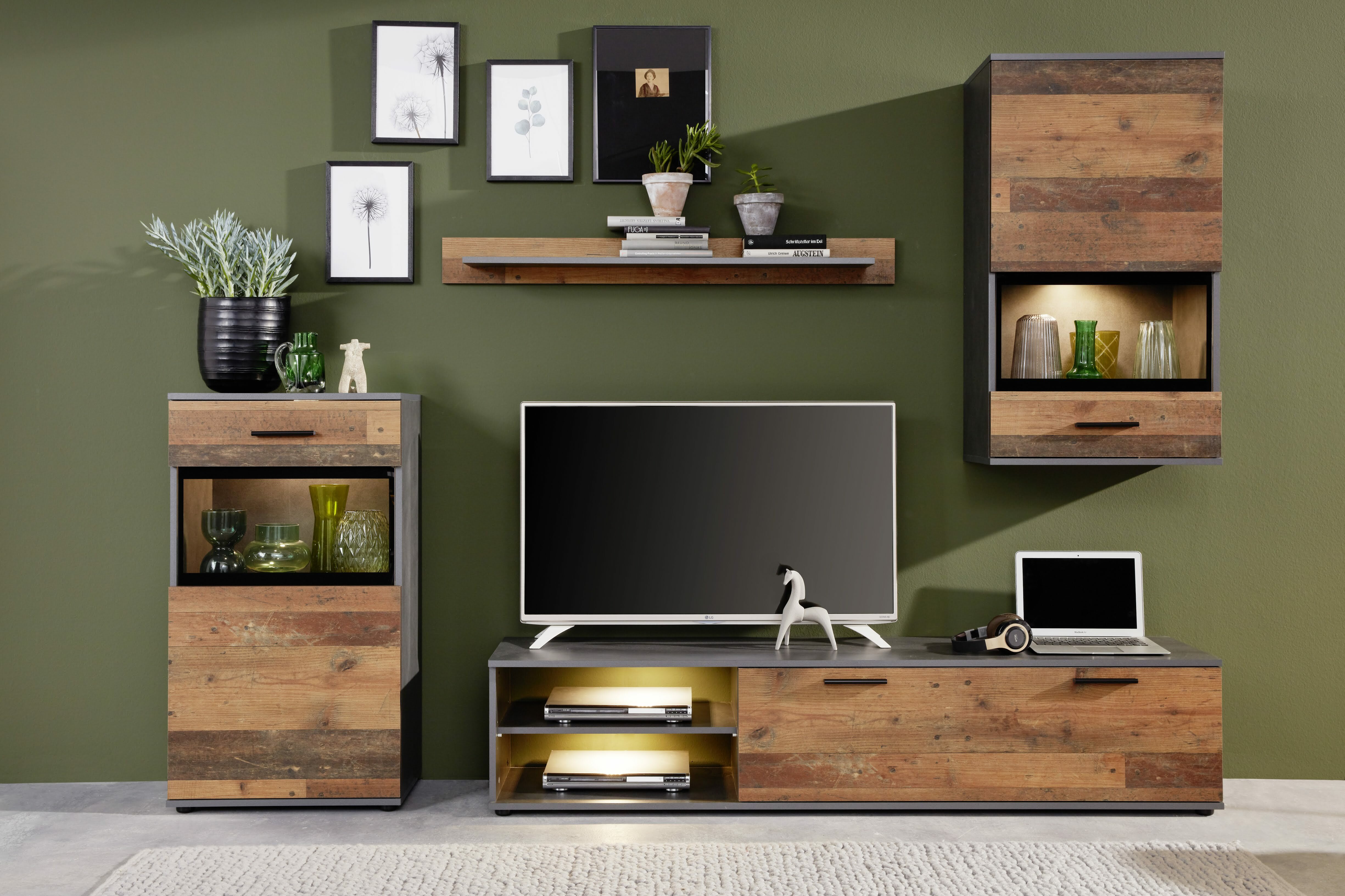 Meuble salon/séjour en mélaminé. Meuble TV (max 50 pouces) avec de l'espace de rangement. L-H-P : 246 - 1