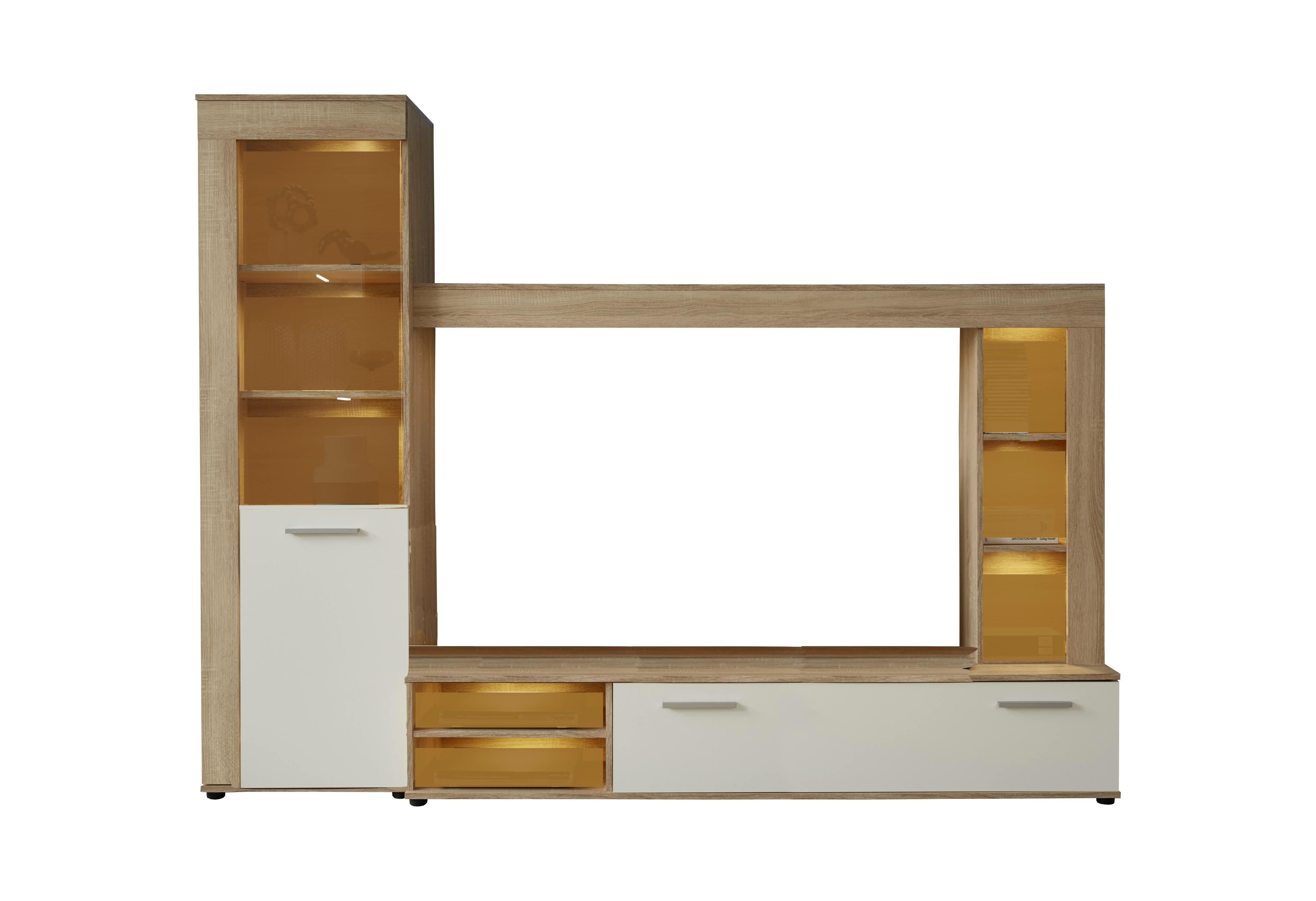 | Libellé | Meuble salon/séjour en mélaminé. Meuble TV (max 55 pouces) avec de l'espace de rangement. L-H-P : 240-185-41 cm |