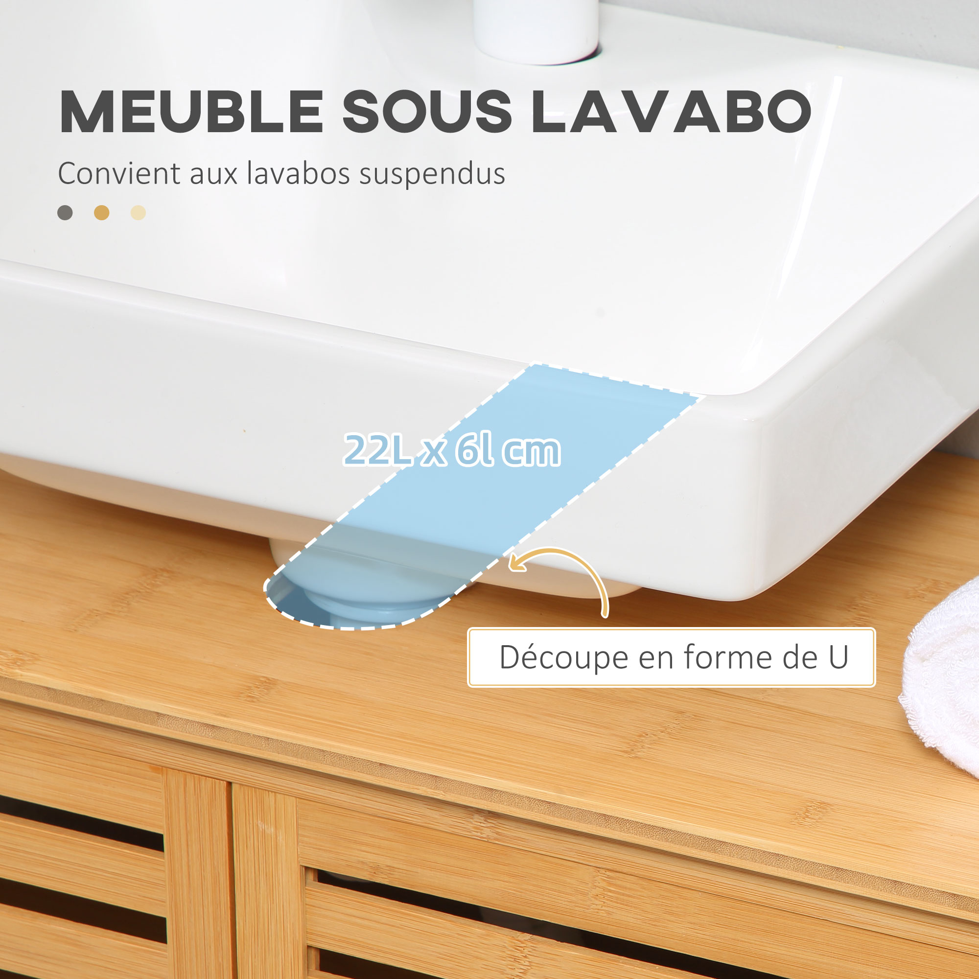 Meuble sous-vasque 2 portes à lattes - dim. 66L x 29l x 61,5H cm - bois de bambou verni