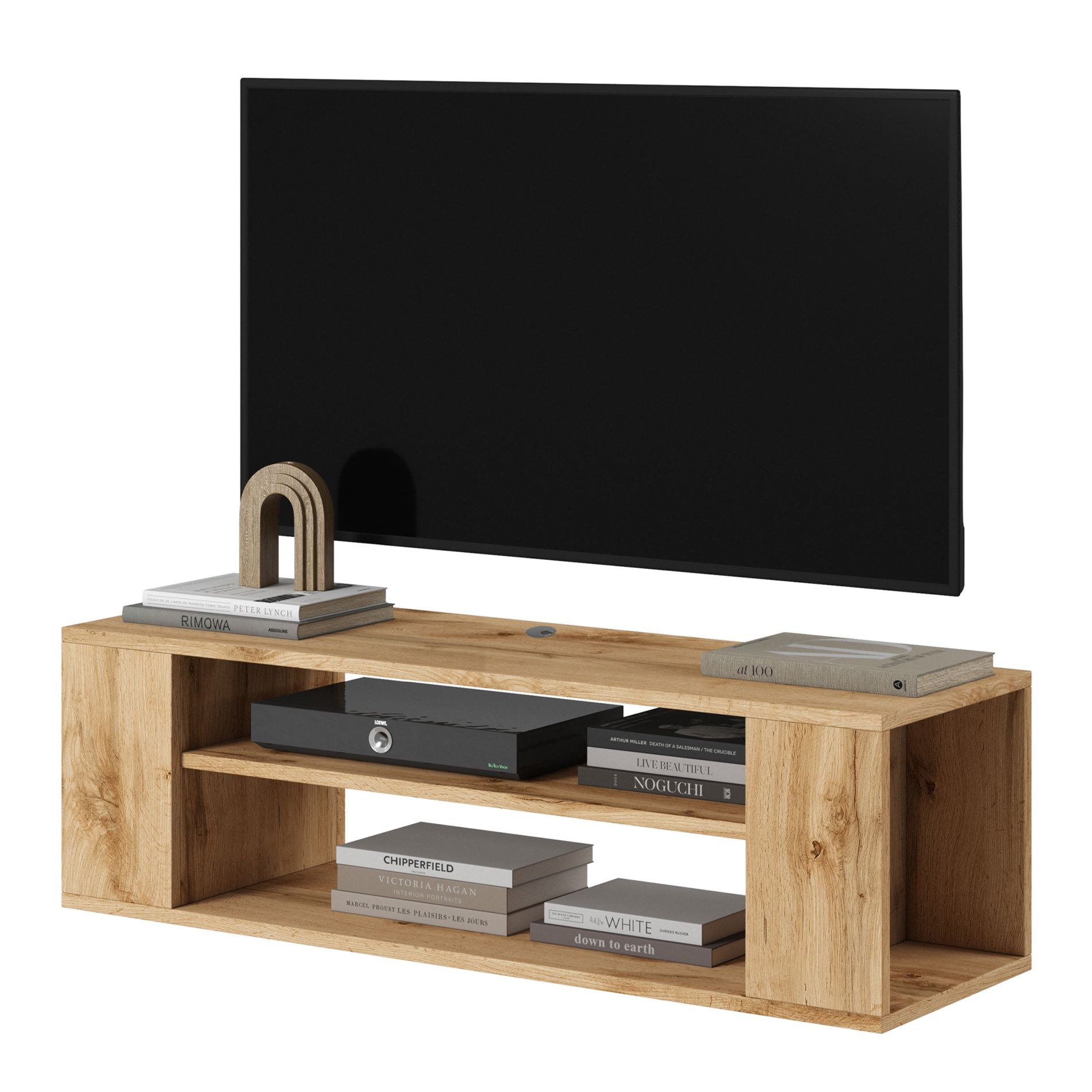 Le plateau supérieur lisse peut accueillir un téléviseur ou, si celui-ci est fixé au mur, être utilisé de manière décorative (par exemple pour des vases, livres ou figurines). Son look minimaliste s’intègre parfaitement aux styles scandinave, moderne ou minimaliste.