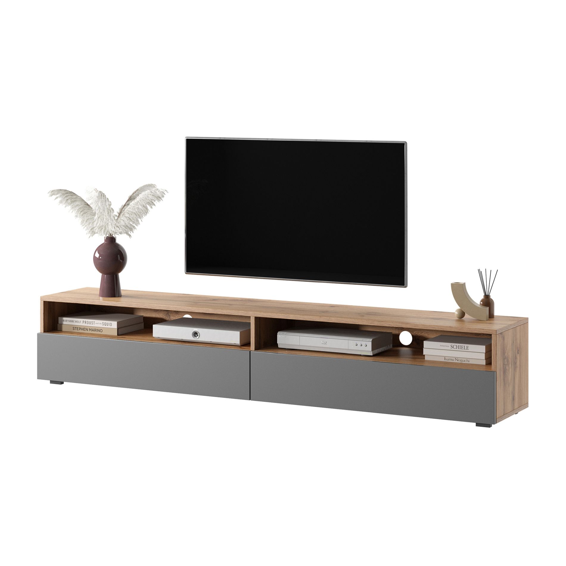 | Libellé | Meuble TV 180 cm chêne/gris brillant LED avec 2 compartiments REDNAW |