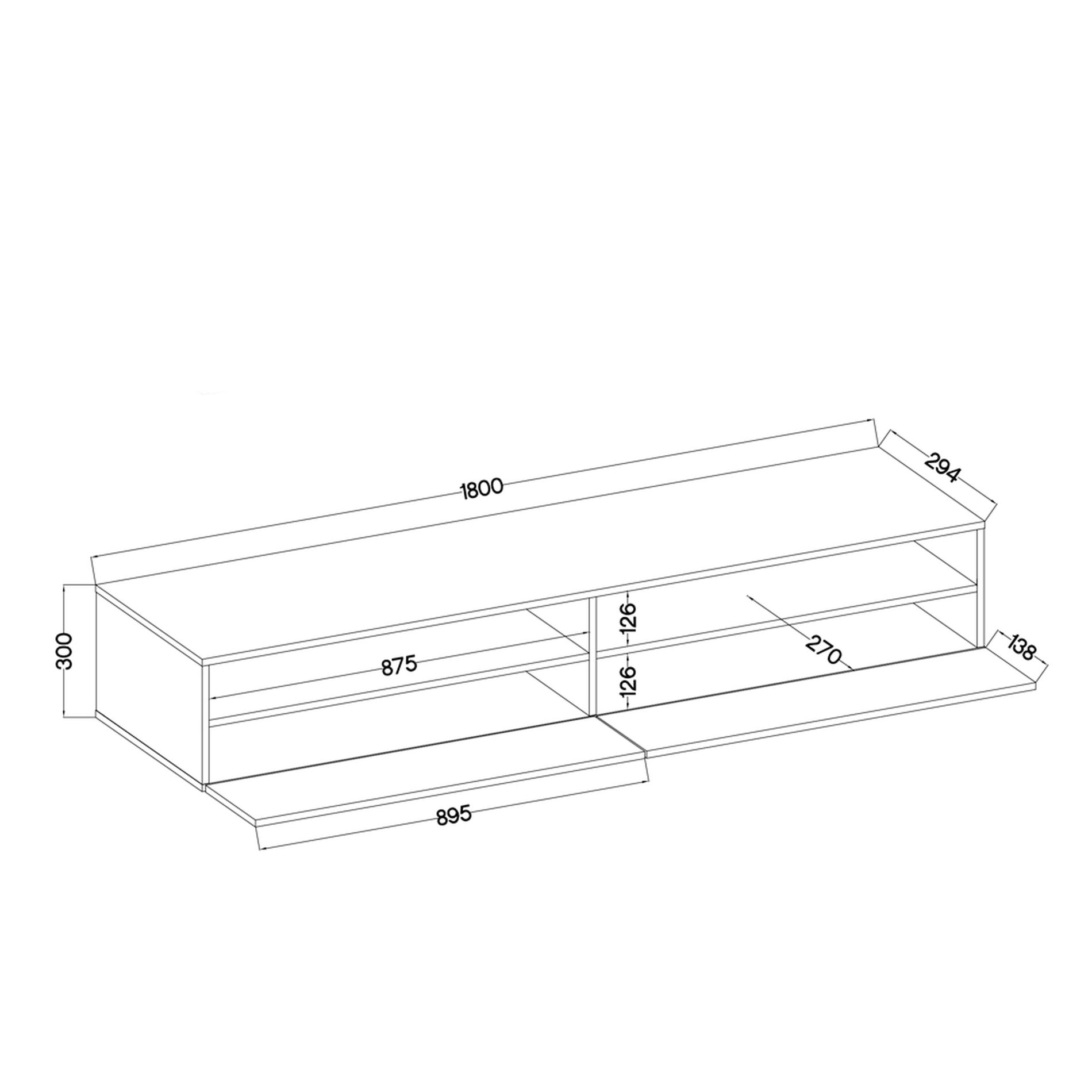 | Libellé | Meuble TV 180 cm chêne/noir brillant LED avec 2 compartiments REDNAW |