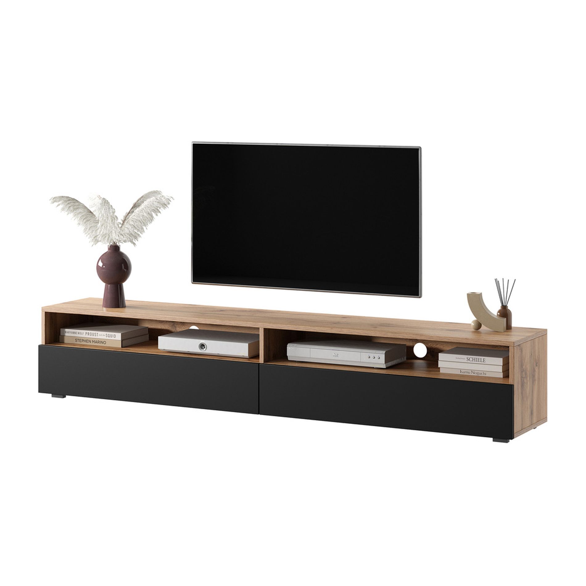 Meuble TV 180 cm chêne/noir brillant LED avec 2 compartiments REDNAW
