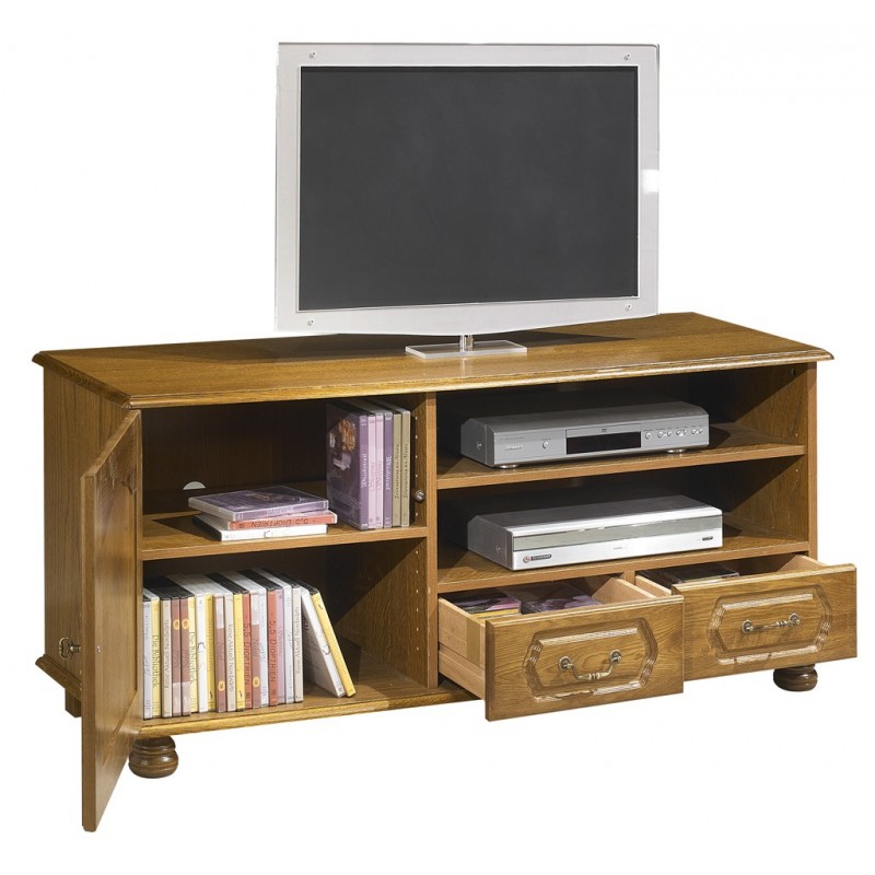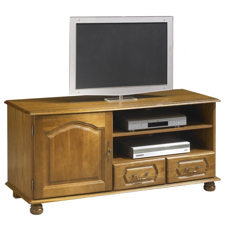 Meuble TV 60 Pouces Maxi Chêne Rustique 1 Portes et 2 Tiroirs