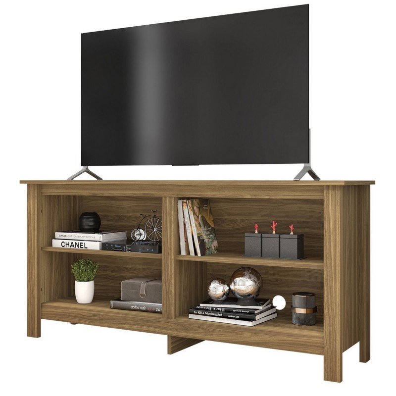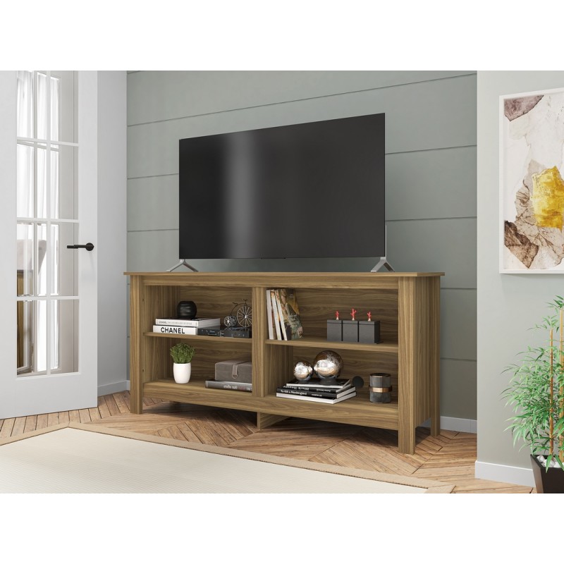 Meuble TV MYLES 148 cm pour TV 65 pouces Maxi. 4 Niches Ouvertes. Coloris Imitation Chêne