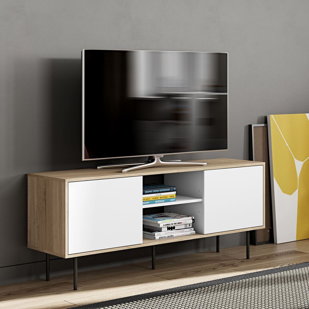 Meuble TV ALTITUDE - chêne naturel et blanc - TEMAHOME