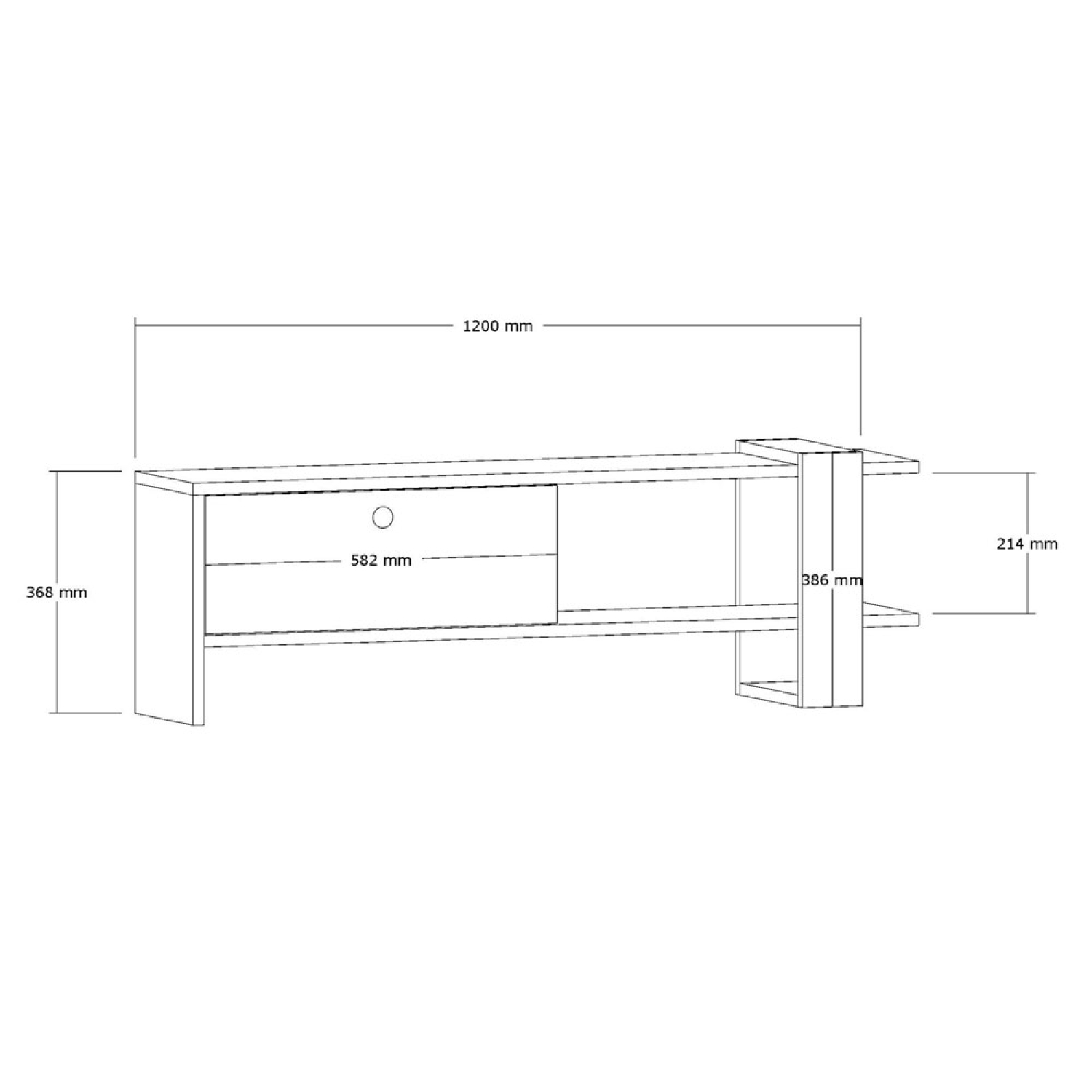 Libellé Meuble TV asymétrique gris anthracite avec placard aspect bois 120cm OVA