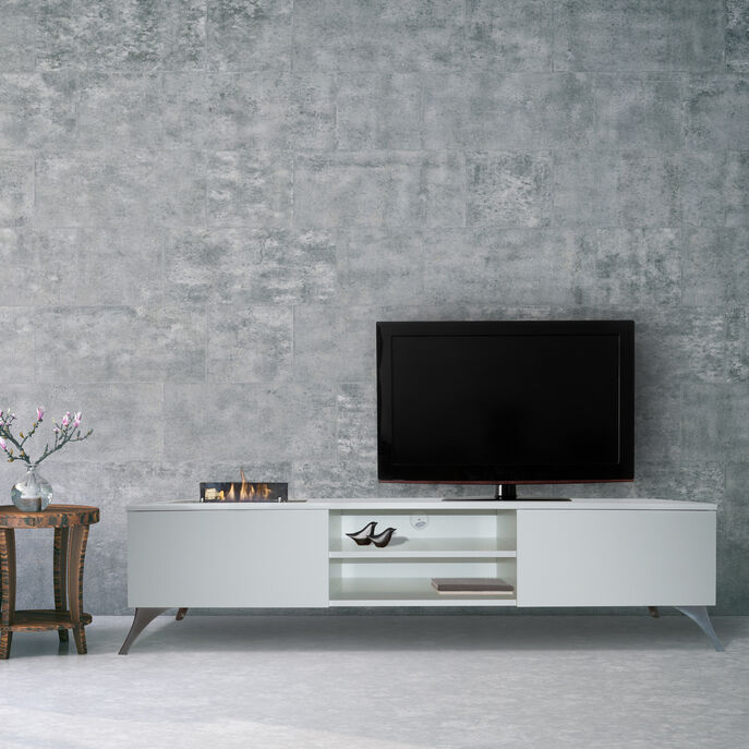 | Libellé | Meuble TV avec cheminée au bioéthanol Elin - Buffet blanc - Cinewall - Chauffage 2 KW |