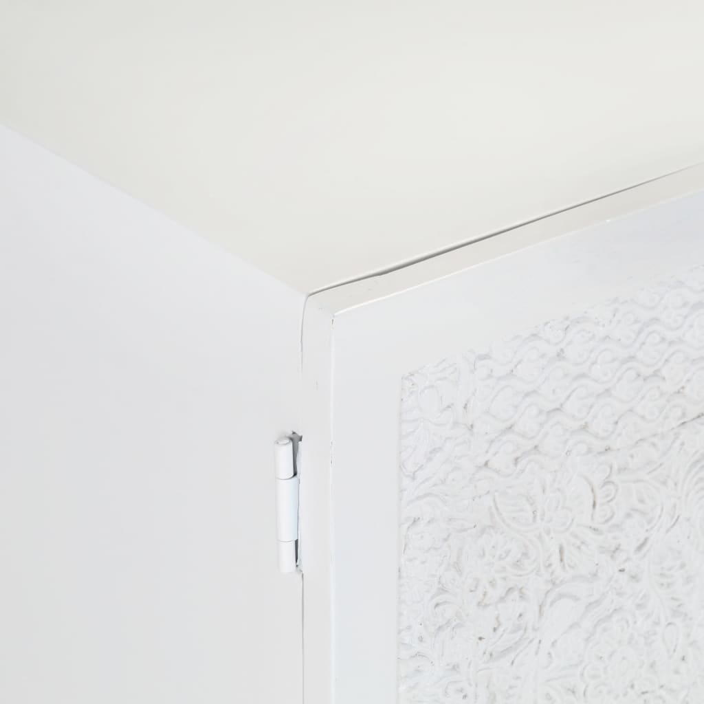 Meuble TV Blanc 115x30x46 Bois massif de manguier