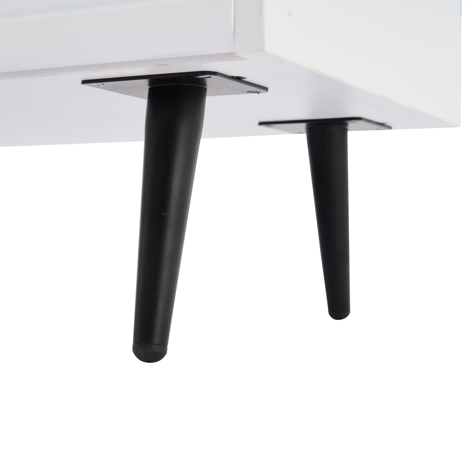 - Deux tiroirs : Les tiroirs à ressort s'ouvrent d'une simple pression, sans poignées. Le verre trempé est transparent et texturé, et les six pieds supportent jusqu'à 40 kg, alliant esthétique et fonctionnalité.